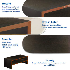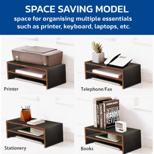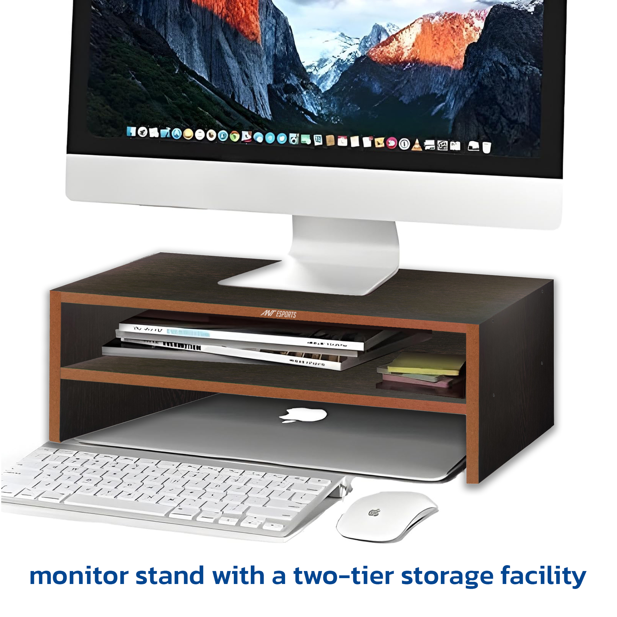 Ant Esports Wooden Monitor Desk Stand Riser with Flat Storage Organizer |Desktop Ergonomic Monitor Stand Riser, Ergonomic for Laptop, Computer, Notebook, iMac, PC_2 Tiers -Dark Brown