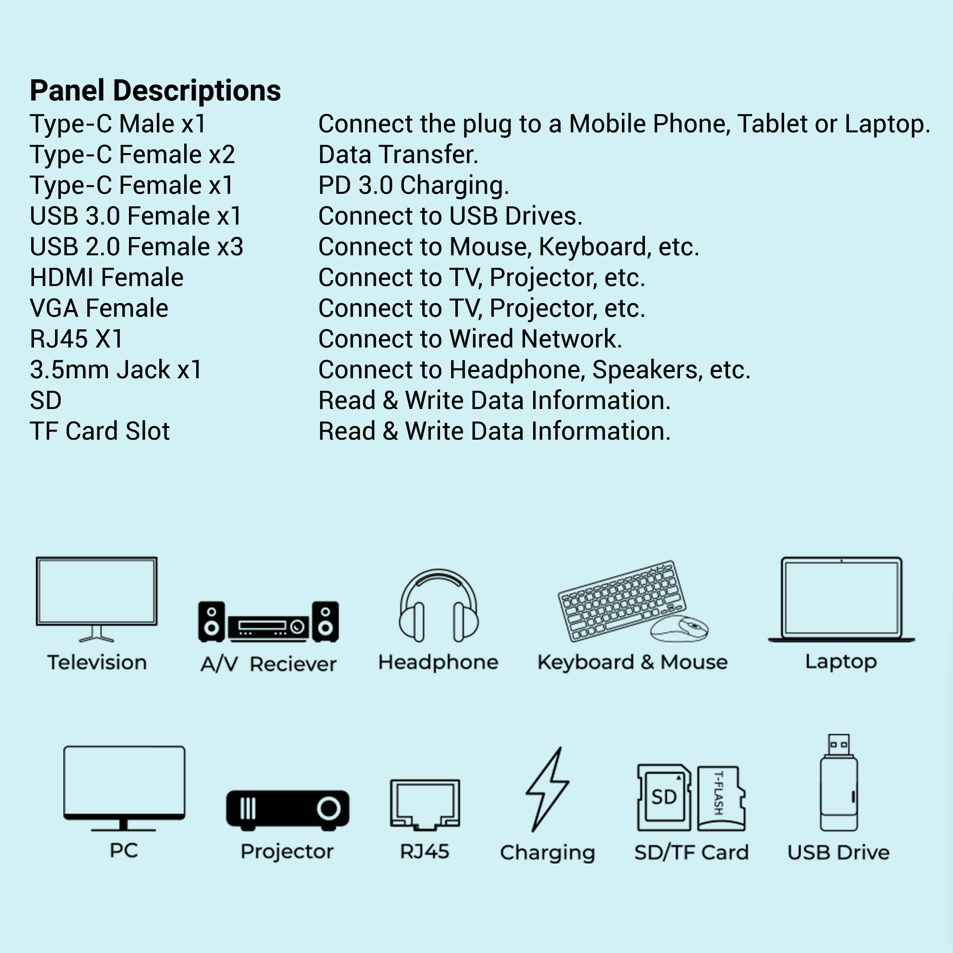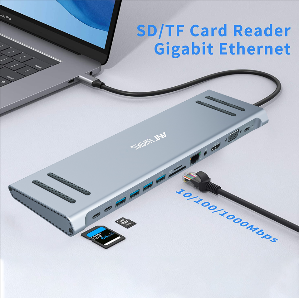 • Comprehensive connectivity: The Ant Esports AEC 1310 USB Type-C docking station is a versatile solution for anyone who needs to connect multiple devices to their laptop or desktop computer. With thirteen ports available, you can connect peripherals like keyboards, mice, and external hard drives, as well as displays, Ethernet networks, and audio equipment.