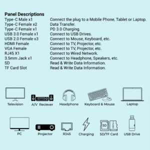 • High-speed data transfer: The AEC 1310 features two USB 3.0 ports and one USB 2.0 port, providing fast data transfer speeds for your peripherals. A build in card reader supports high speed data transfer directly from your micro and macro SD cards. Additionally, it has two USB Type-C ports, which can be used for data transfer, charging, or video output.