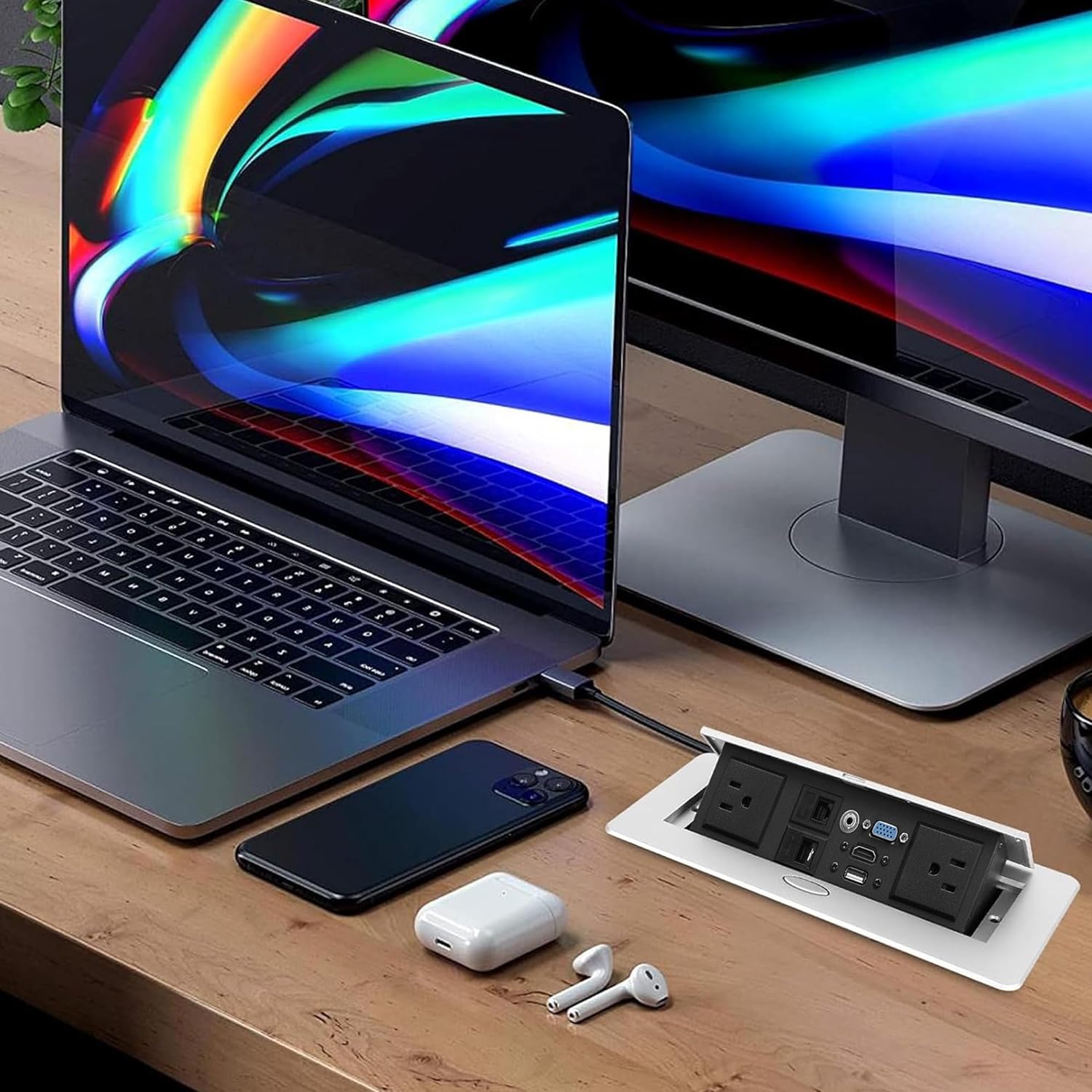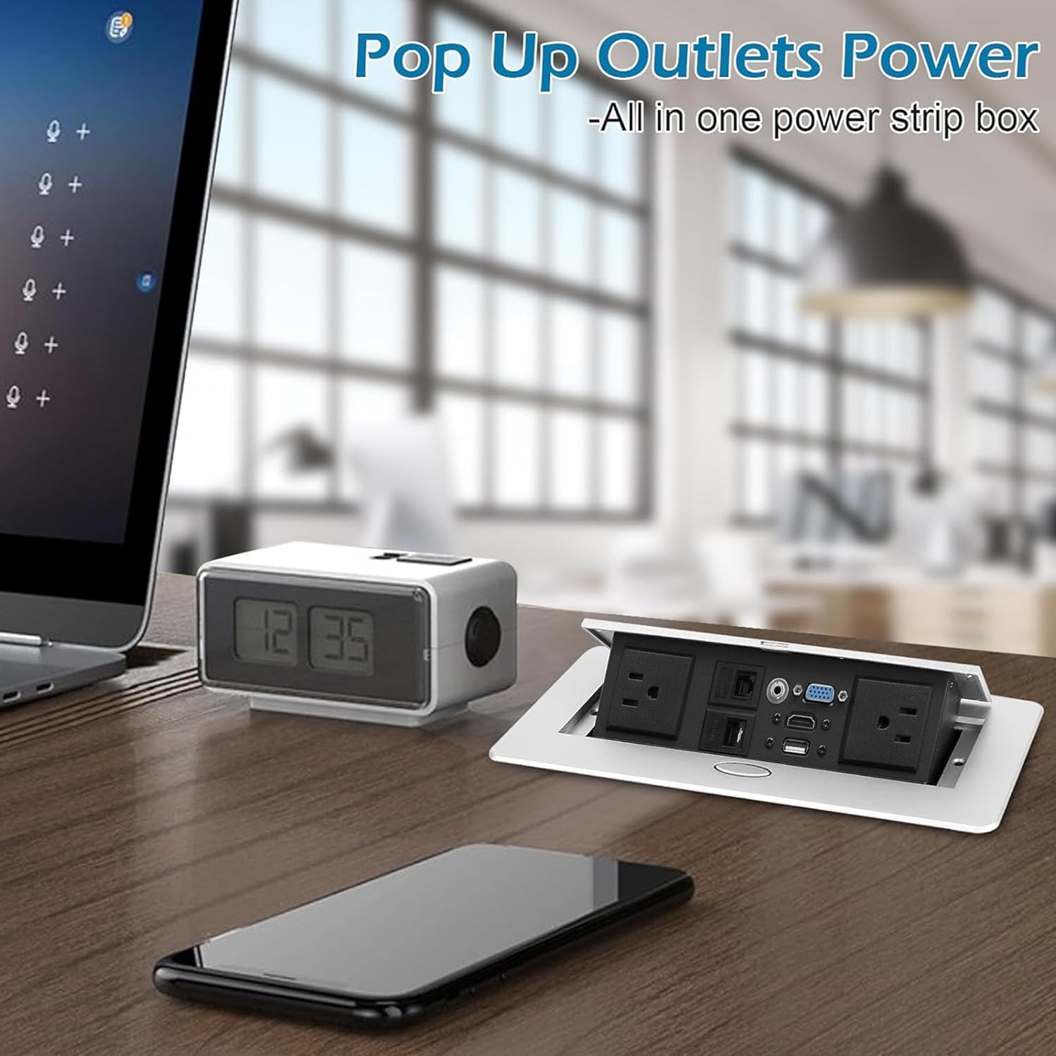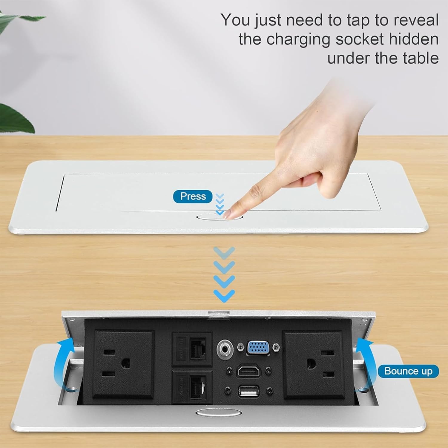 • Convenient Pop-Up Design: The Ant Esports AEMDS412 pop-up power outlet features a user-friendly design that opens up with a simple press of a button, revealing the integrated power and connectivity options. This pop-up mechanism allows for easy access to the outlets and ports when needed, and it stays discreetly hidden in the table when not in use, maintaining a clean and organized appearance.
