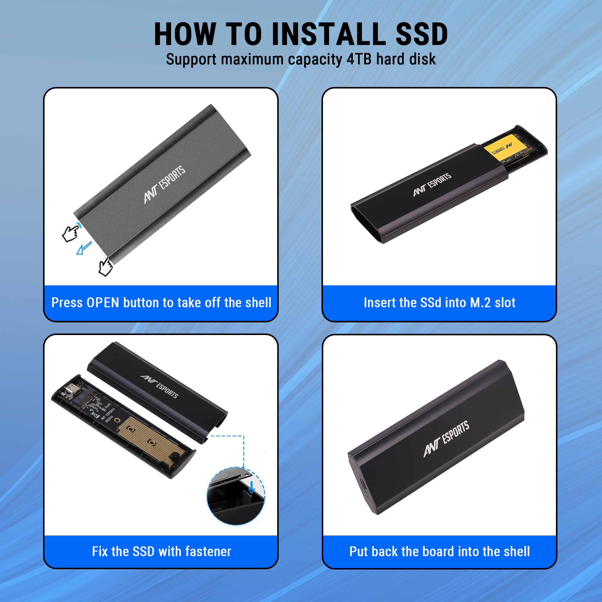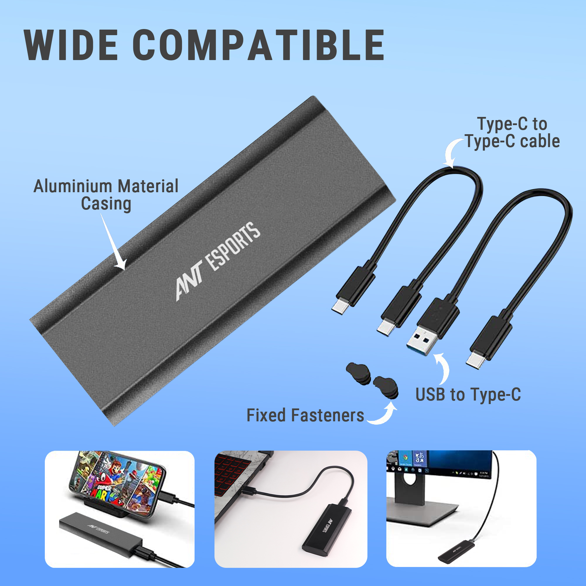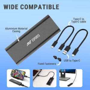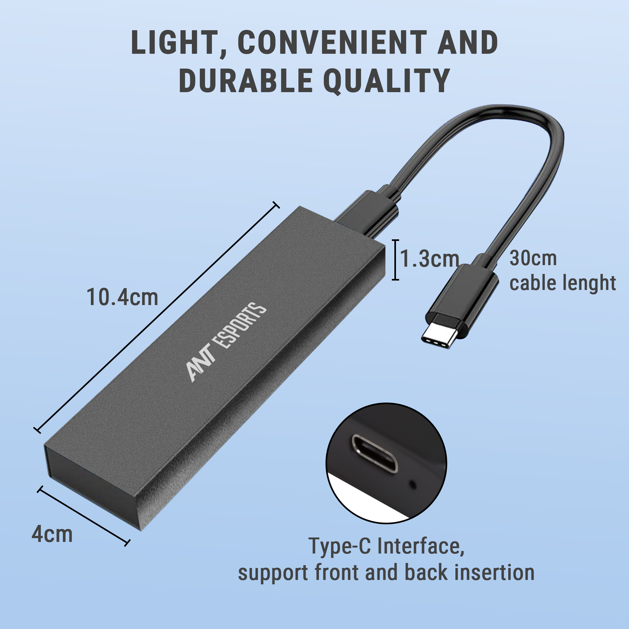 - Durable Aluminum Construction: The Ant Esports AESE201 external SSD enclosure is crafted from high-quality aluminum, ensuring not only a sleek and modern design but also providing exceptional durability. This makes it a reliable choice for users who require robust and long-lasting external storage solutions.