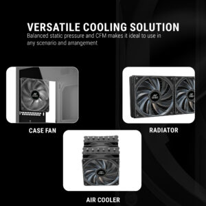 - Sickle Shaped Blades for Optimal Airflow: The Darkflow fans boast sickle-shaped blades, designed to maximize airflow efficiency. Running at an impressive 1800 RPM, these fans generate 40 CFM of airflow and 2.12 mm-H2O of static pressure, making them an ideal choice for case ventilation or radiator applications in both liquid and air cooling setups.