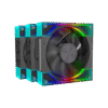 Stack the Fans in an array, and just connect the single ARGB & PWM Cable to get the connection.