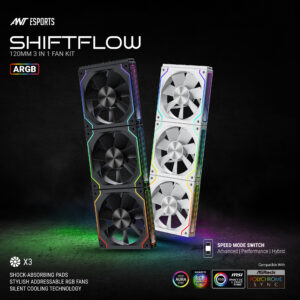 Ant Esports Shiftflow 3x120mm ARGB Revesible Stackable Black Case Fan Kit