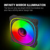 - ARGB Infinity Mirror Design Hub: Featuring an ARGB infinity mirror design hub, the Spectraflow creates a mesmerizing lighting display that enhances the overall aesthetics of your PC. The infinity mirror effect adds depth and sophistication to the fan, making it a focal point in any gaming setup.