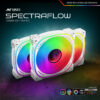 - ARGB Infinity Mirror Design Hub: Featuring an ARGB infinity mirror design hub, the Spectraflow creates a mesmerizing lighting display that enhances the overall aesthetics of your PC. The infinity mirror effect adds depth and sophistication to the fan, making it a focal point in any gaming setup.