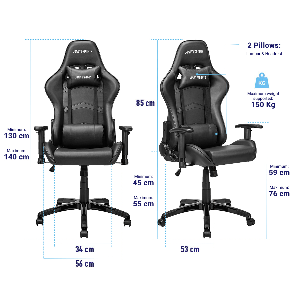 Ant Esports 9077 Ergonomic Gaming Chair, Multifunctional Gaming Chair with Premium PU Leather Upholstery, 2D Armrest, Integrated Neck and Lumbar Support, & 180° Recline – Back