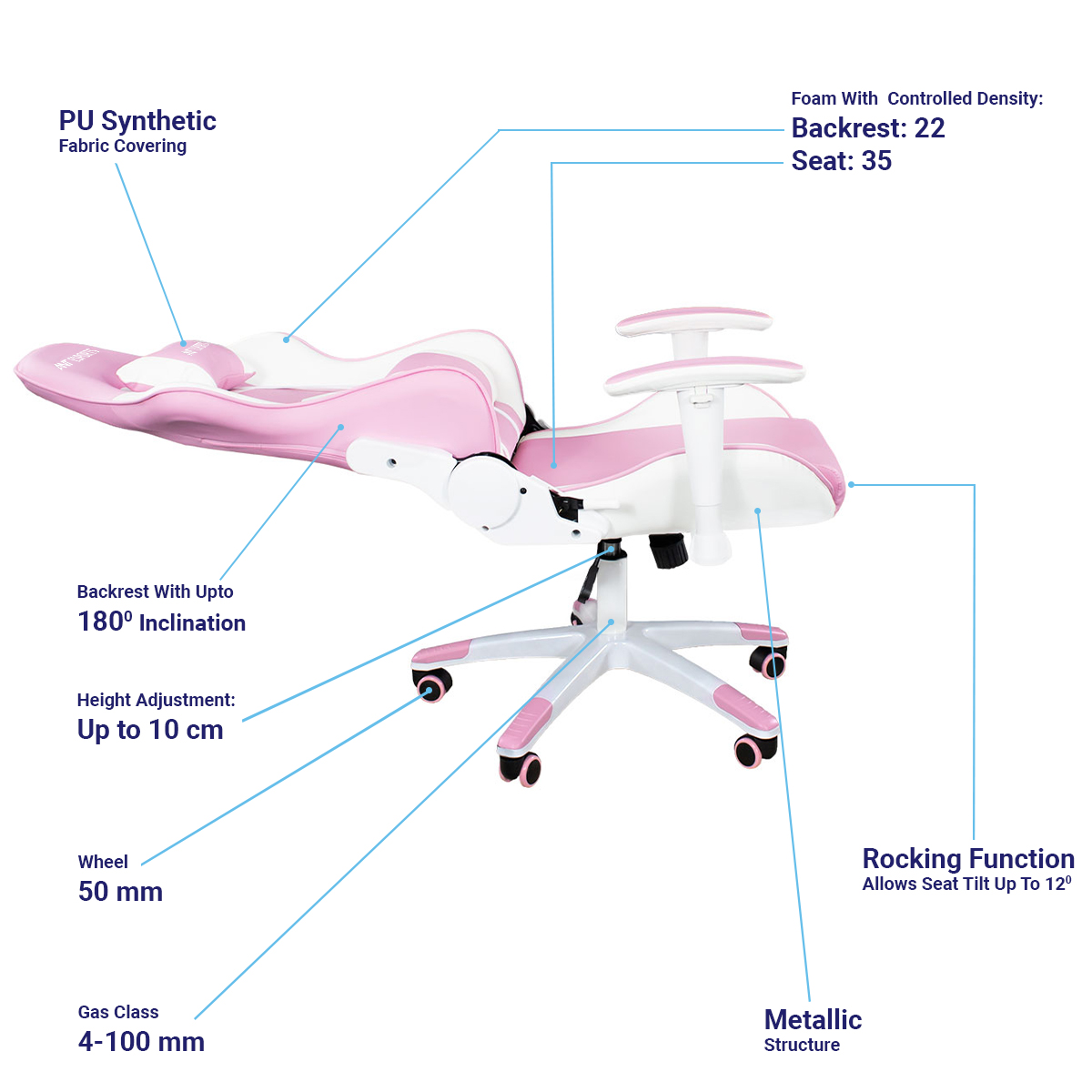 Ant Esports 9077 Ergonomic Gaming Chair, Multifunctional Gaming Chair with Premium PU Leather Upholstery, 2D Armrest, Integrated Neck and Lumbar Support, & 180° Recline – White & Pink