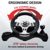 - Customizable Sensitivity Levels and On-Board Buttons: Tailor your gaming experience with the three sensitivity levels—Arcade, Pro, and Expert—allowing you to fine-tune the responsiveness to match your gaming style. The customizable buttons on the steering wheel provide quick access to essential functions, putting the power to personalize your setup at your fingertips.