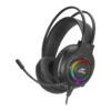 A metal frame with an adjustable headband makes the headset light on the head and with the round pulsating RGB ring it becomes a head-turner for many thanks to its distinctive looks and performance.