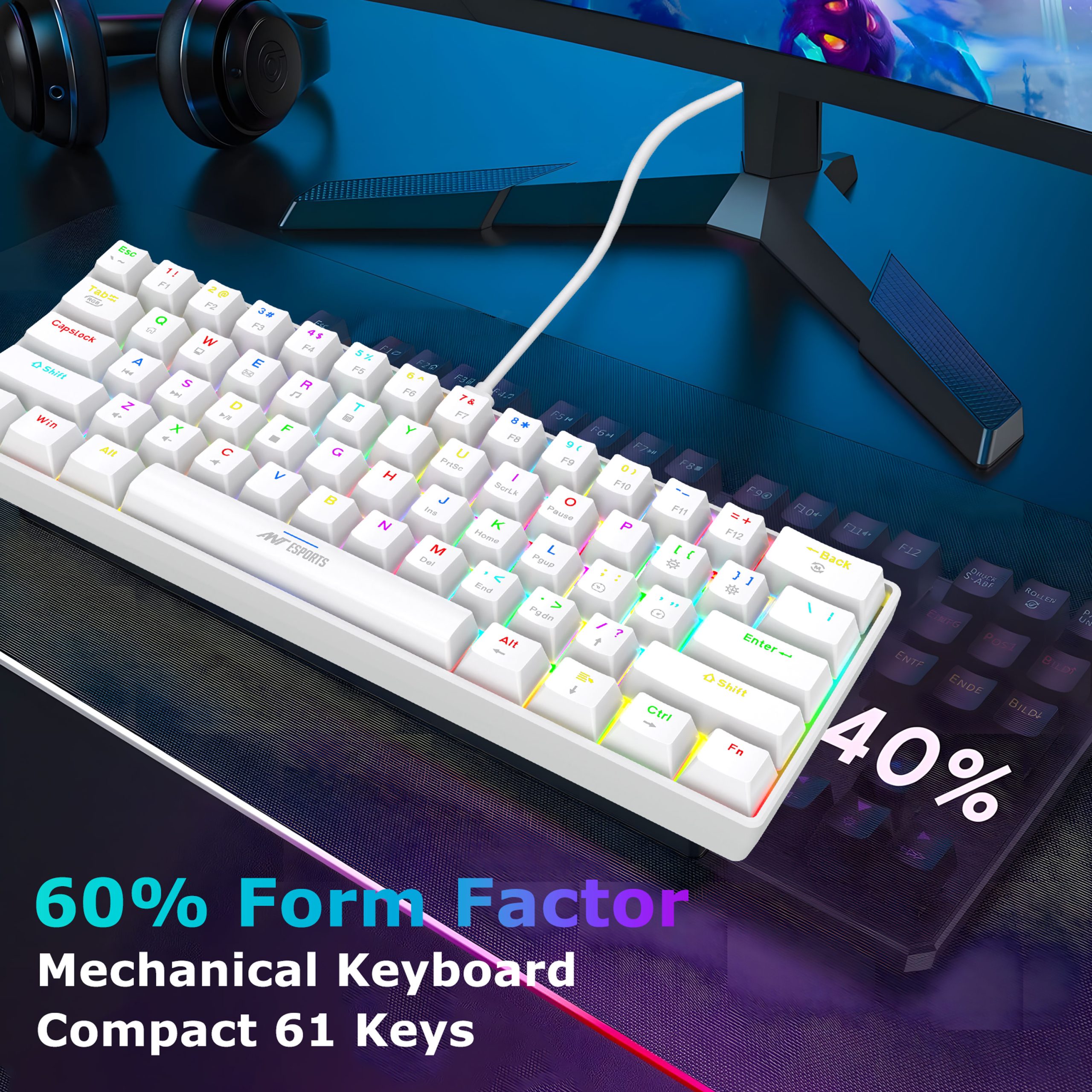 Ant Esports Virtus100 White Wired Gaming Mouse 12800 DPI