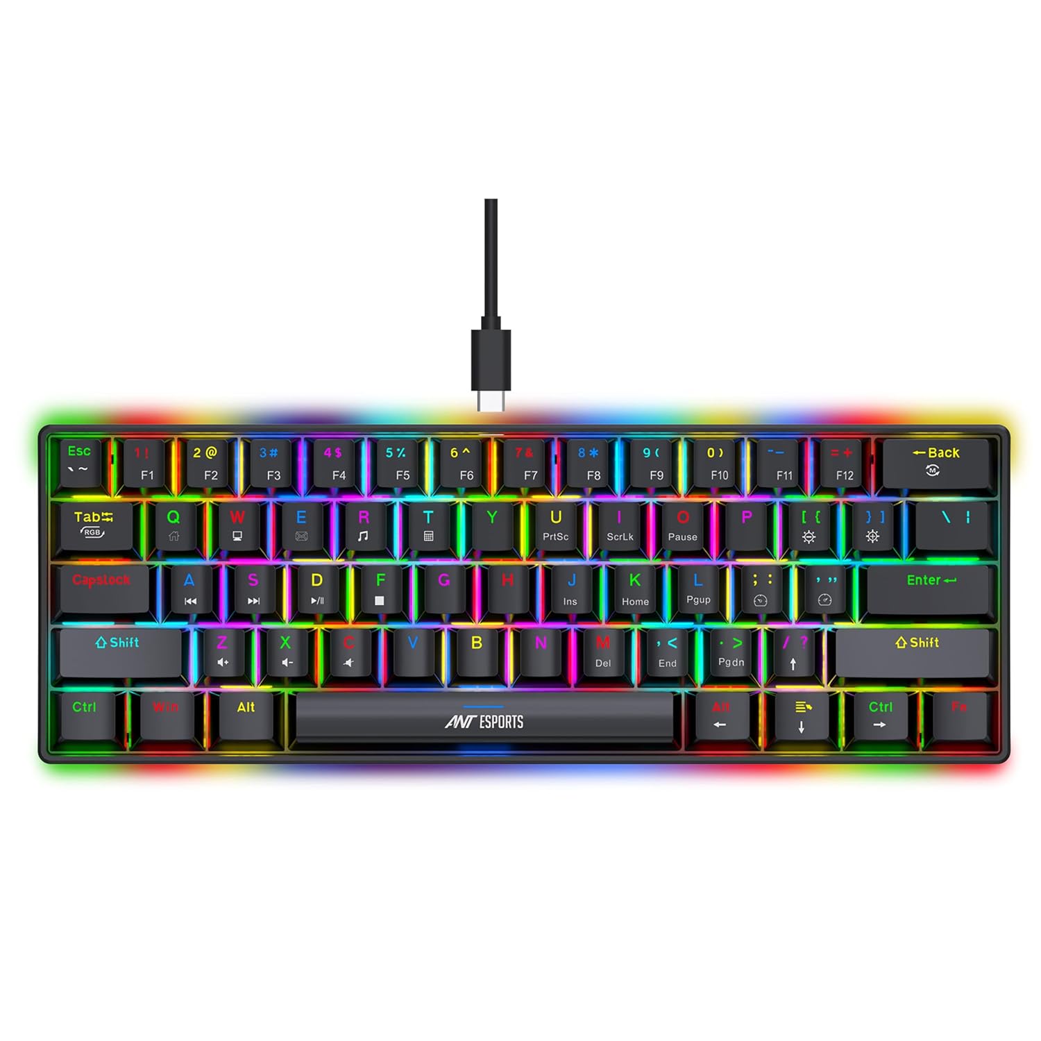 Ant Esports MK1300 V2 Portable 60 Percent Mechanical Keyboard, Compact 61 Keys Mini Gaming Keyboard for PC/Mac Gamer Switchable Colorful RGB Backlit Software, Swappable Switch – Brown Switch – Black