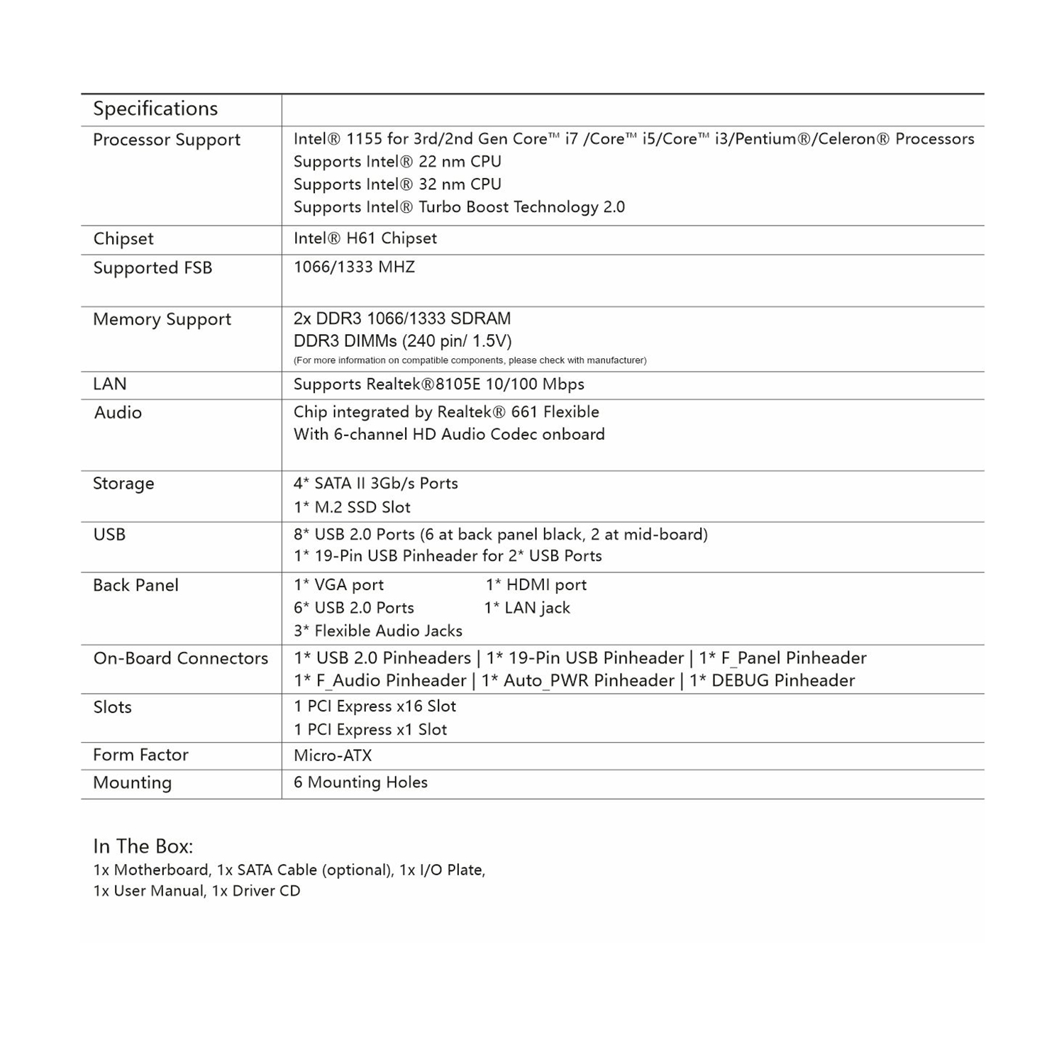 - Wide CPU Compatibility – Supporting LGA 1155 socket based Intel CPUs, the Ant Value H61MAD3-N motherboard provides exceptional performance and reliability, allowing gamers to get the most out of their gaming experience.