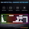 The included RGB gaming mouse features an aggressive design with programmable buttons, an ergonomic feel, and dynamic underglow lighting. With an adjustable DPI switch, it provides fast sensitivity control for FPS, MOBA, and general-use scenarios. Its durable construction ensures reliable performance even during extended gaming sessions.