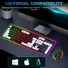 Developed by Ant Esports, the keyboard features a striking mix of white and black keycaps illuminated by multi-zone RGB backlighting. The floating keycap structure enhances brightness and ensures crisp, tactile feedback ideal for intense gameplay or fast typing sessions. The keyboard also includes a full numeric keypad and dedicated function keys for added versatility.