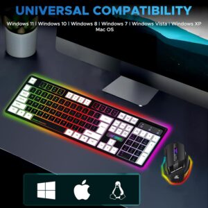 Dual-Tone Keycap Layout featuring a stylish blend of white and black keycaps for improved visibility and aesthetics.