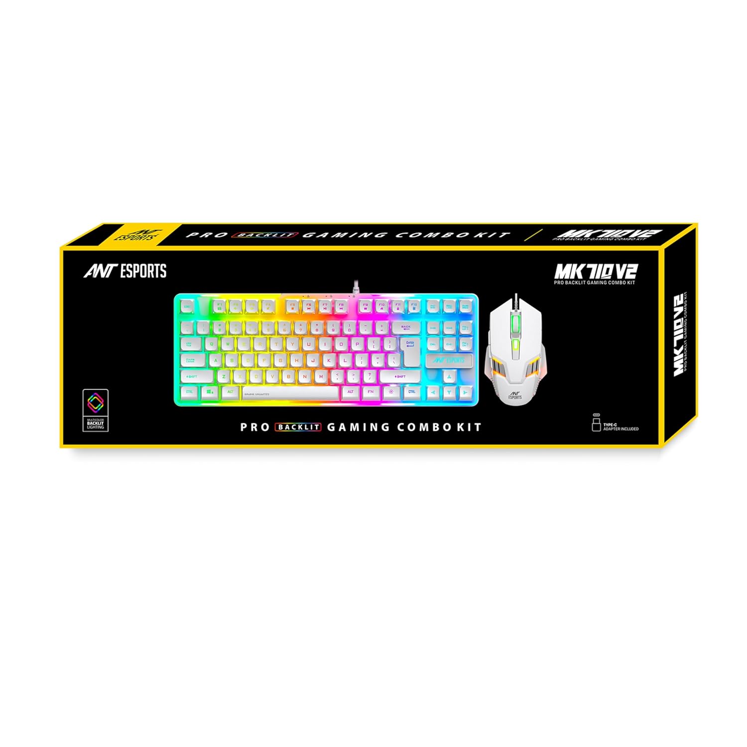 Ant Esports MK710 V2 Membrane TKL Wired Gaming Keyboard Mouse Combo 87 UV Coated Mechanical feel Keys Cool RGB Backlight Keyboard,1200-3600 DPI Aero-Jet RGB Gaming Mouse with Type C Adapter_ Mercury