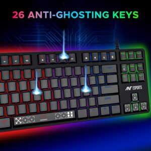 Ant Esports Thunder20 Wired Mechanical Gaming Keyboard and Mouse Combo | TKL Keyboard Rainbow Backlight 26Anti-Ghosting Keys, 6-Button 3600DPI Mouse | USB | PC/Laptop Compatible_ Red Switch_ Black