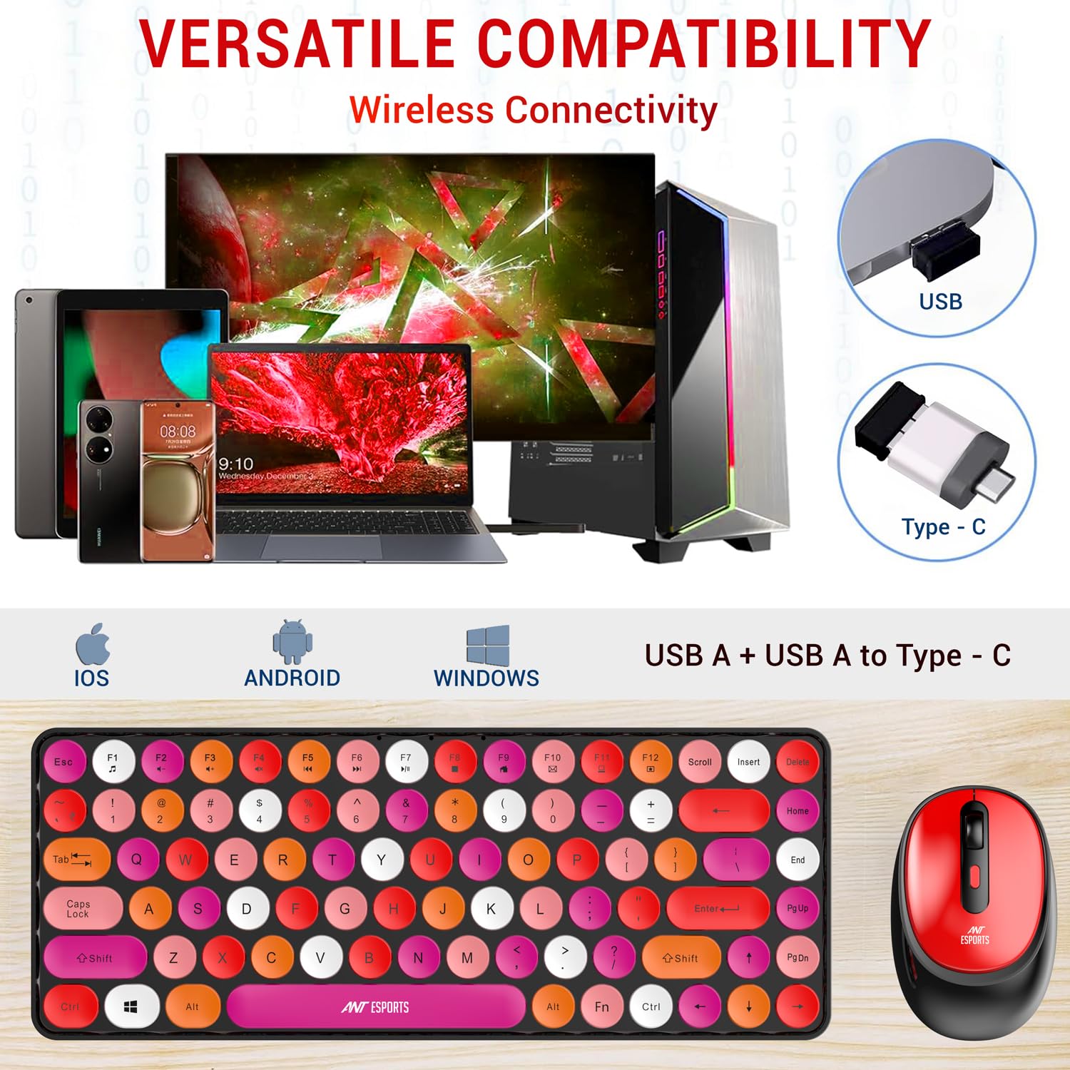 Brighten up your workspace with the WKM33 Wireless Keyboard & Mouse Combo, a stylish and compact input solution designed for modern users who value both aesthetics and comfort. With its colorful retro-style round keycaps and slim form factor, the WKM33 transforms any desk setup into a lively and visually engaging environment.