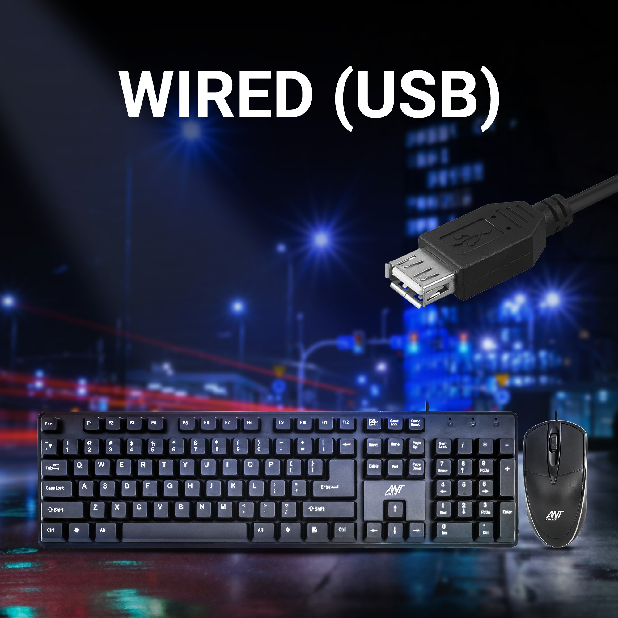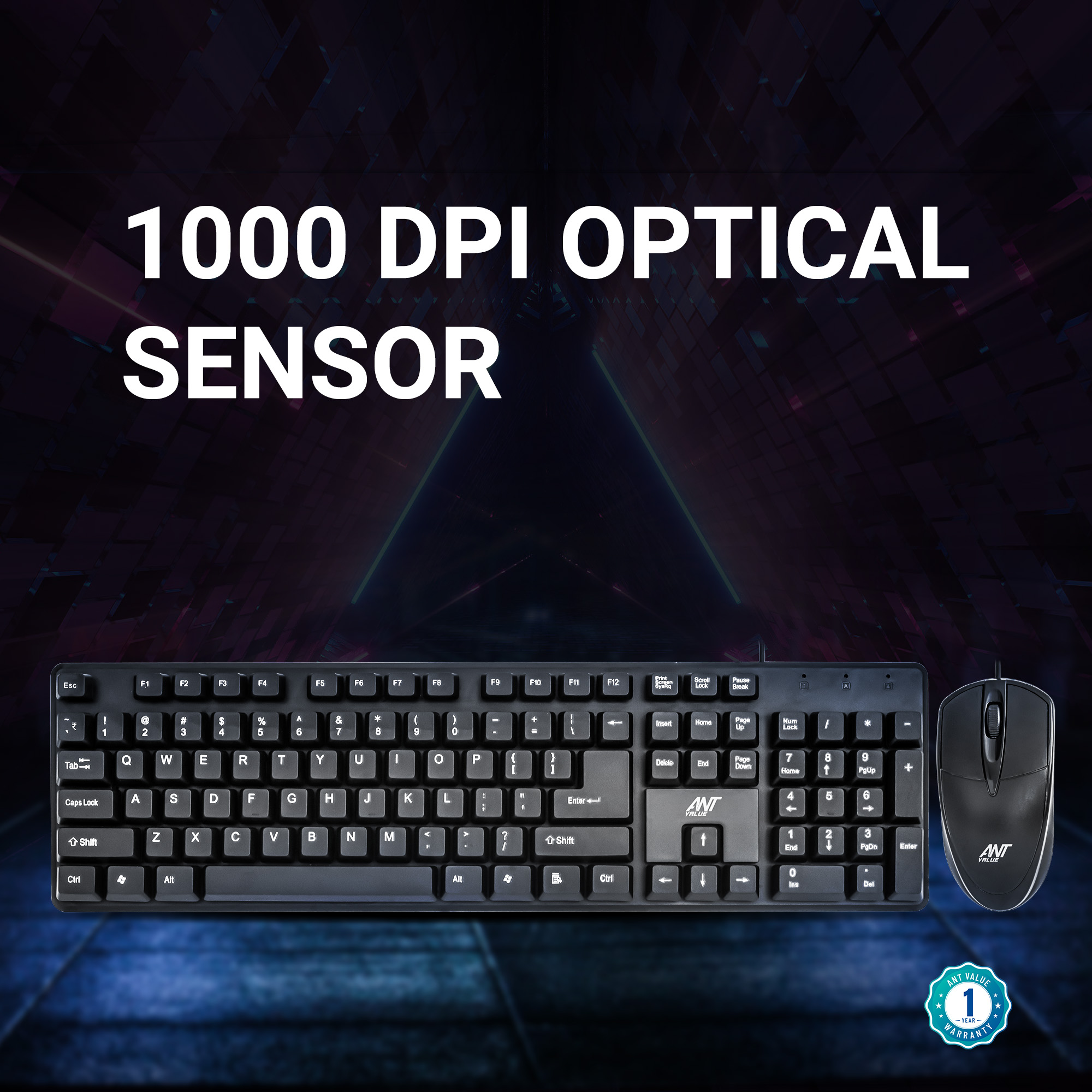 The wired mouse included in the combo features a symmetrical design suitable for both left- and right-handed users. It offers smooth optical tracking and responsive clicks, making it reliable for everyday tasks such as browsing, navigation, and work applications.