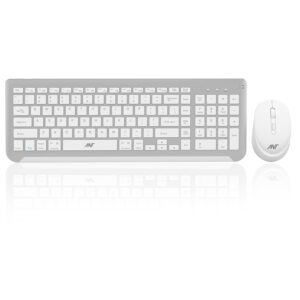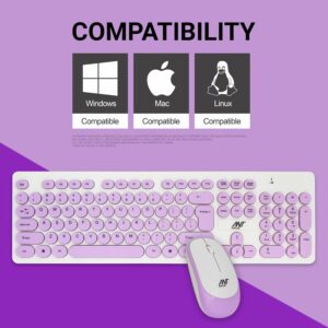 Ant Value FKBRI05 Wireless Keyboard Mouse Combo – 2.4Ghz Aesthetic Quiet Keyboard and Mouse – 110 Keys Full Size Ultra-Thin Keyboard for Laptop, Computer, PC, Notebook, Windows, Mac OS (Purple White)