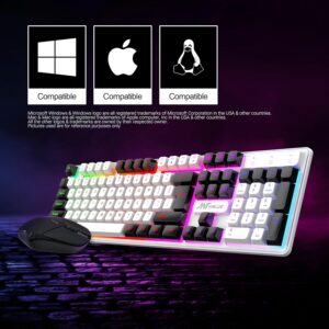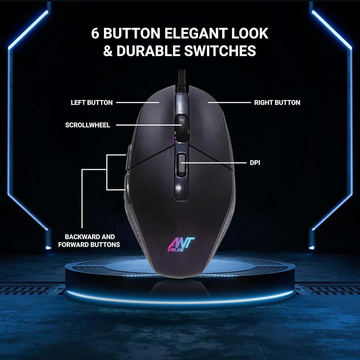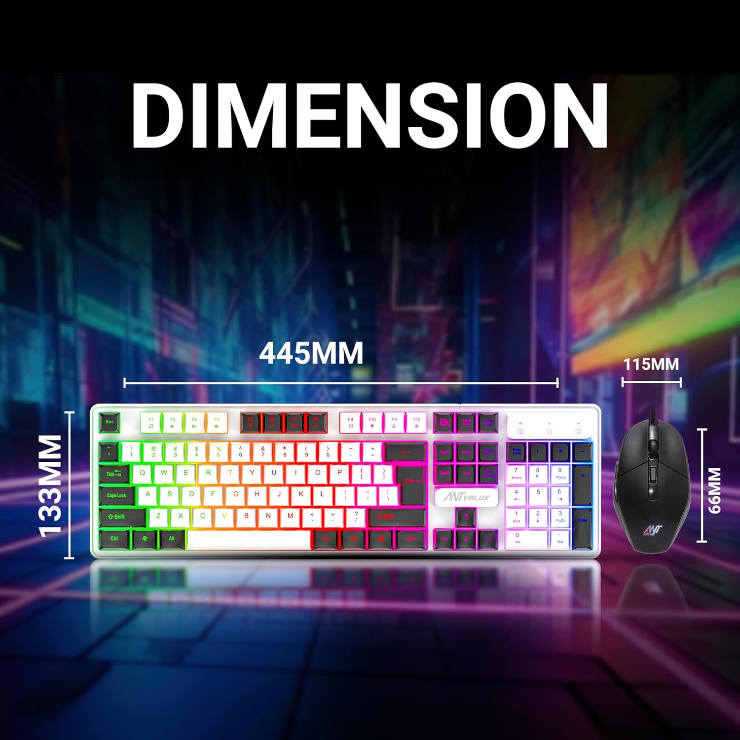 Ant Value KK1002 Wired Gaming Keyboard & Mouse Combo, 104 Silent keys, Backlit Rainbow LED Keyboard & 3200 DPI RGB Gaming Mouse for PC/Laptop