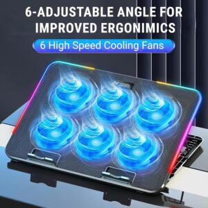 Ant Esports NC250 RGB Laptop Cooling Pad, Laptop Cooler with Mobile Holder 6 Quite Fans at 3000 RPM Fan Speed Controller 7 Height Adjustable Angle 2USB Ports Compatible for Laptop up to 15.6”