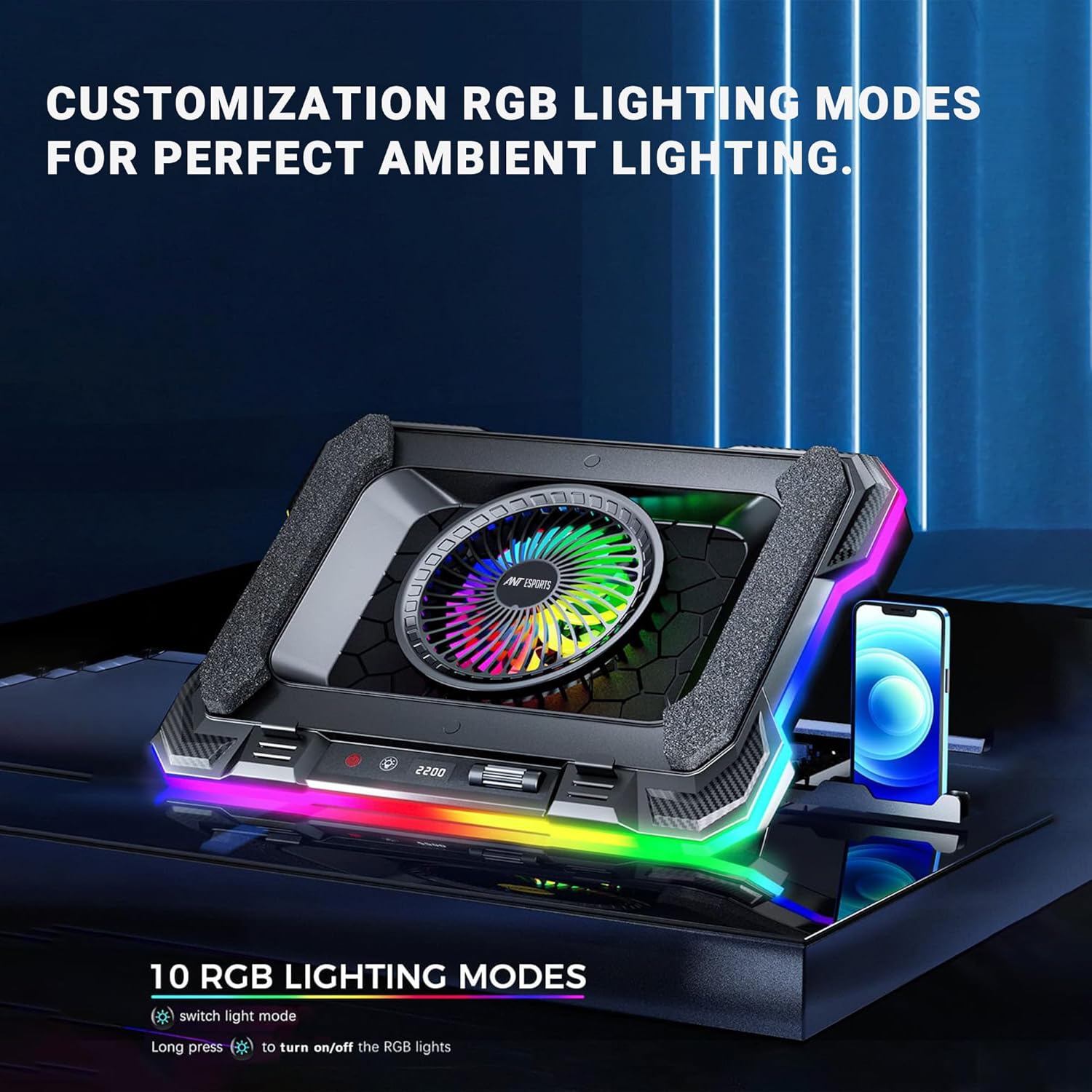 Ant Esports NC320 RGB Gaming Laptop Cooling Pad, Rapid Cooling Laptop Stand with 1*140MM Quite Fan with RPM Controller, Smart and OneTouch Display Laptop stand for 14-19” 8 Height Stands, 2 USB Ports