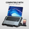 - Stability and Security: With anti-skid rubber pads on its feet and two secure locks to hold your laptop in place, the NC150 ensures that your laptop stays put and stable. You can work or game with confidence, knowing that your laptop won’t slip or fall down during use.