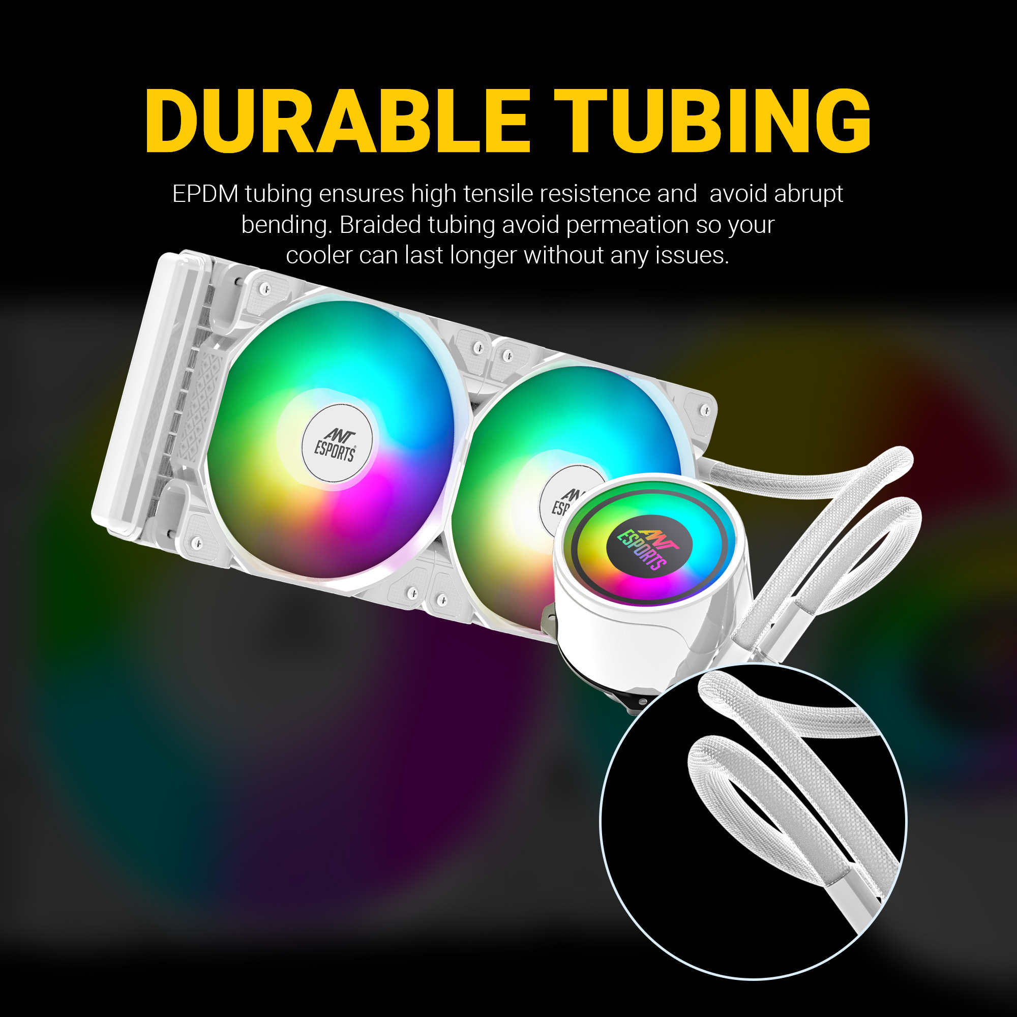 Durable sleeved tubing, reinforced fittings, and a high-density aluminum radiator make the ICE-240 White a long-lasting cooling solution. Its white finish blends seamlessly into clean, minimalist, or themed PC builds.