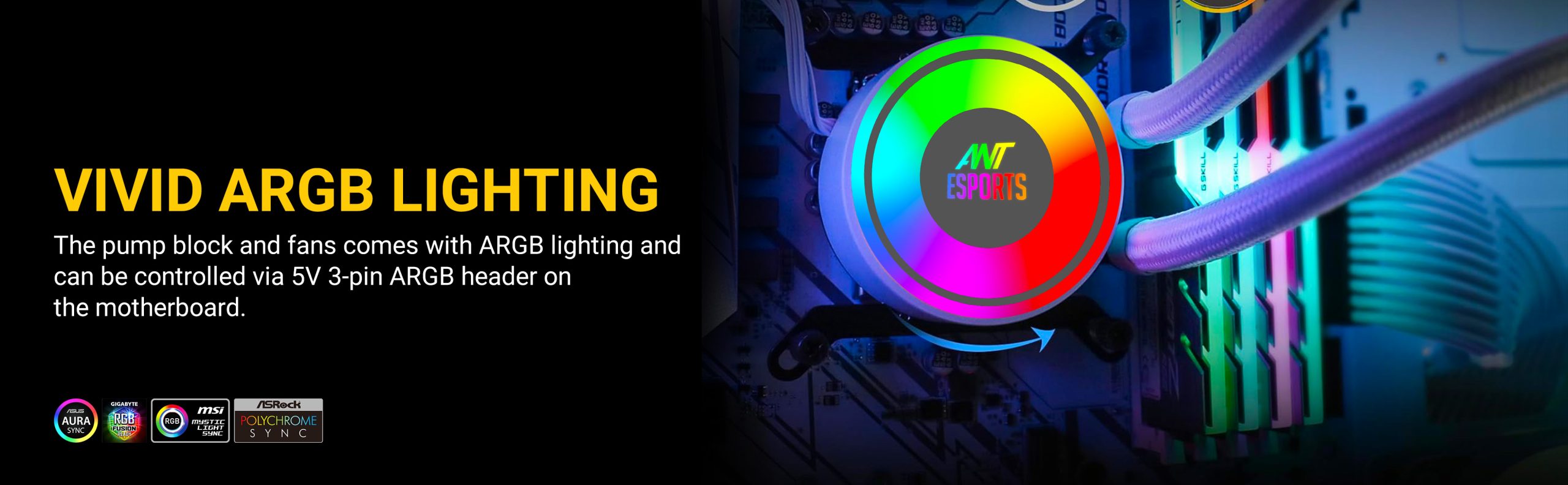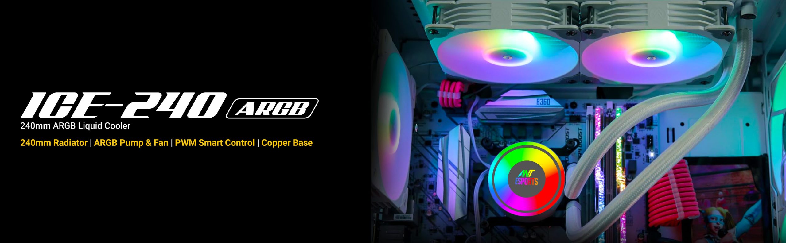 Equipped with two 120mm high-pressure ARGB fans, the ICE-240 provides superior airflow and customizable lighting compatible with all major motherboard sync technologies. Create endless lighting patterns that bring your build to life.