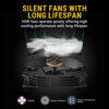 One of its standout features is the built-in display on the pump, providing real-time CPU temperature updates during operation. The pump’s adjustable orientation allows for seamless installation on your CPU, ensuring both functionality and aesthetics. Each 120mm fan is PWM compatible via a 4-pin cable, boasting a high-static pressure rating and fluid dynamic bearing for a quieter operation and an extended lifespan.