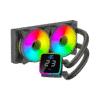 - Dynamic Display and Adjustable Pump: Stand out with the built-in display on the pump, providing real-time CPU temperature updates while in use. The pump’s innovative design allows for easy rotation to a desired angle, accommodating various CPU orientations for a customized and visually appealing installation.