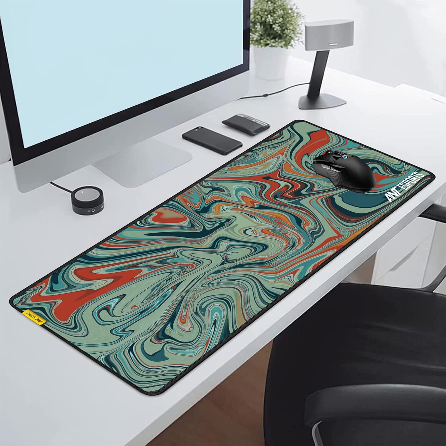 Ant Esports Tropical Wave Unique Mouse Pad Gaming Mouse Pad Extended Mouse Mat for Mouse Keyboard Stitched Edges Waterproof Non-Slip Base Mousepads for Office Home Shop Gaming Extra Large_Dusky Green