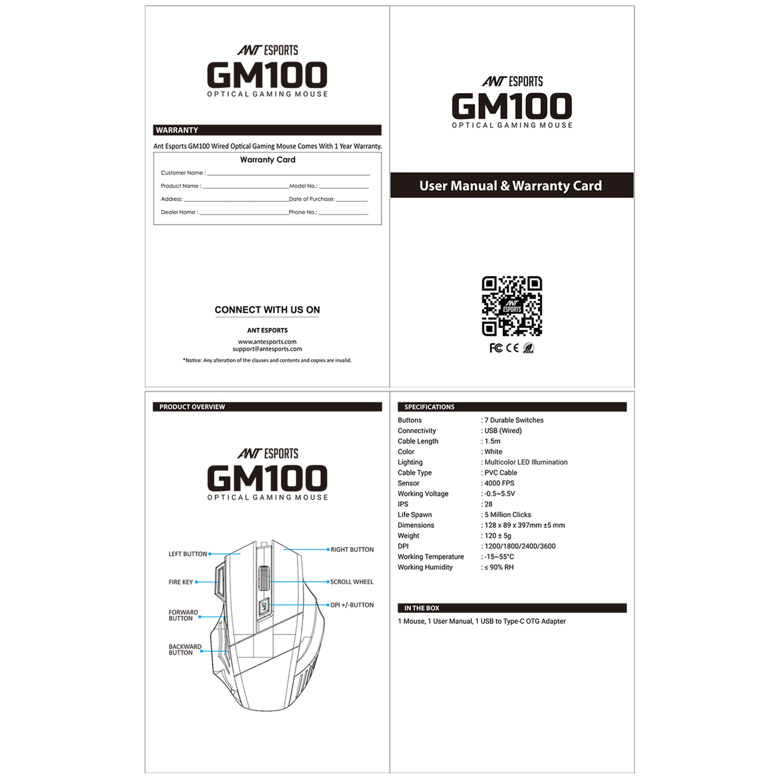 Ant Esports Virtus100 White Wired Gaming Mouse 12800 DPI