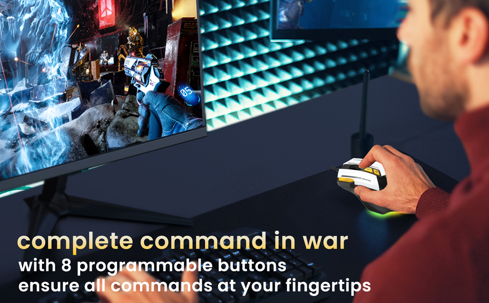 Additional side buttons sit conveniently under the thumb, enabling faster access to in-game commands, macros, or shortcuts. The reinforced cable and durable switches ensure reliable long-term use, making the GM333 White Edition both stylish and performance-ready.