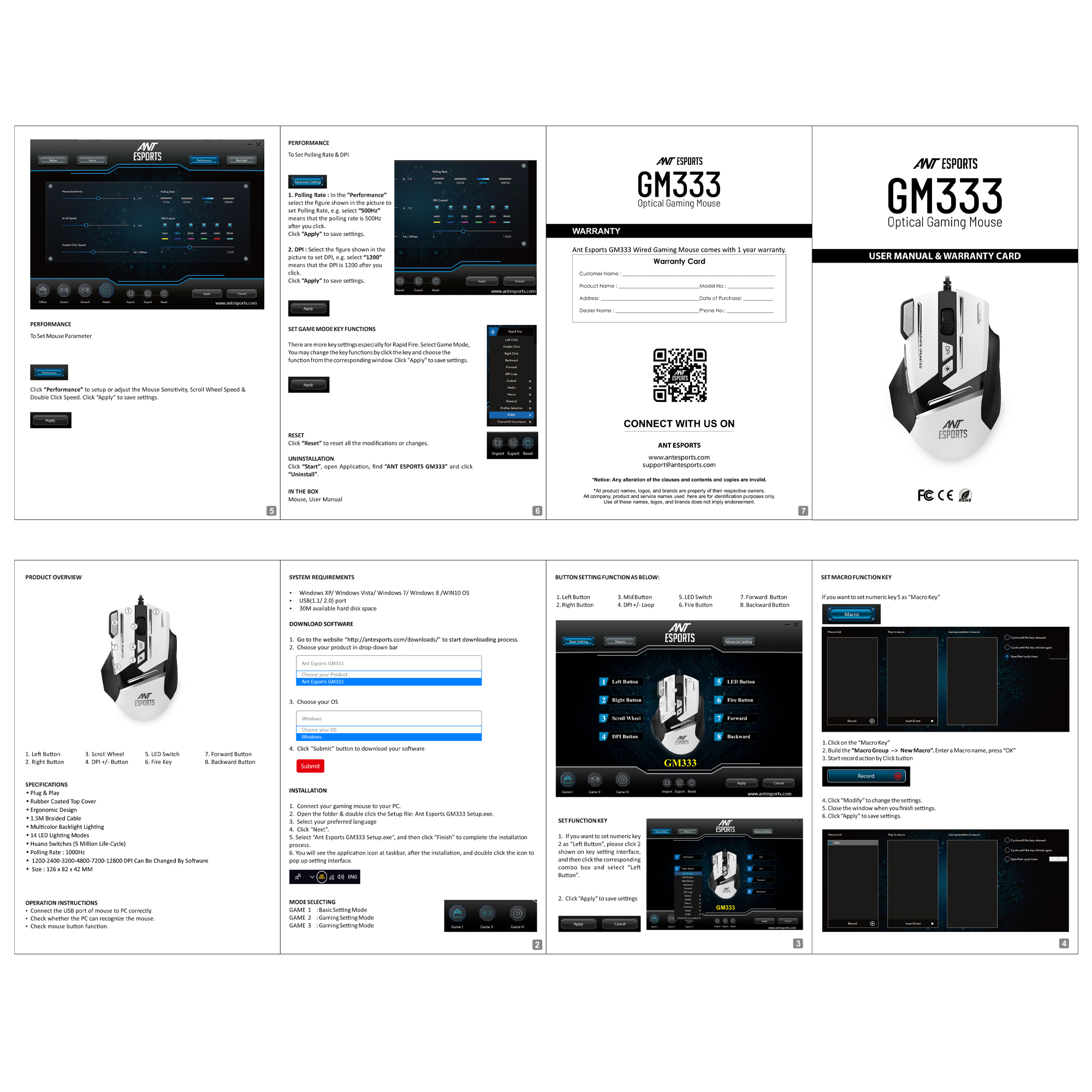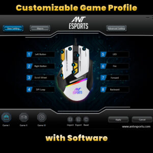 Designed by Ant Esports, the GM333 blends high-performance hardware with intuitive controls. A dedicated DPI button allows instant sensitivity switching, while the lighting control button lets you change RGB modes on the fly. With multiple programmable side buttons, the GM333 gives you tactical command options ideal for FPS, MOBA, MMO, and fast-action gaming.
