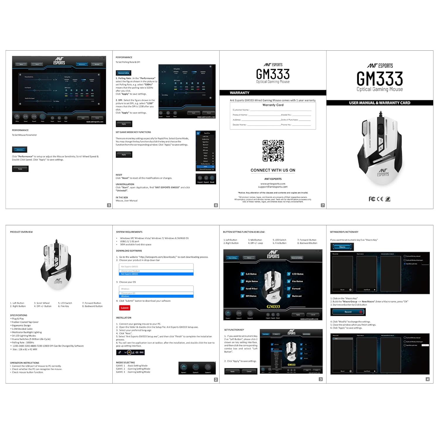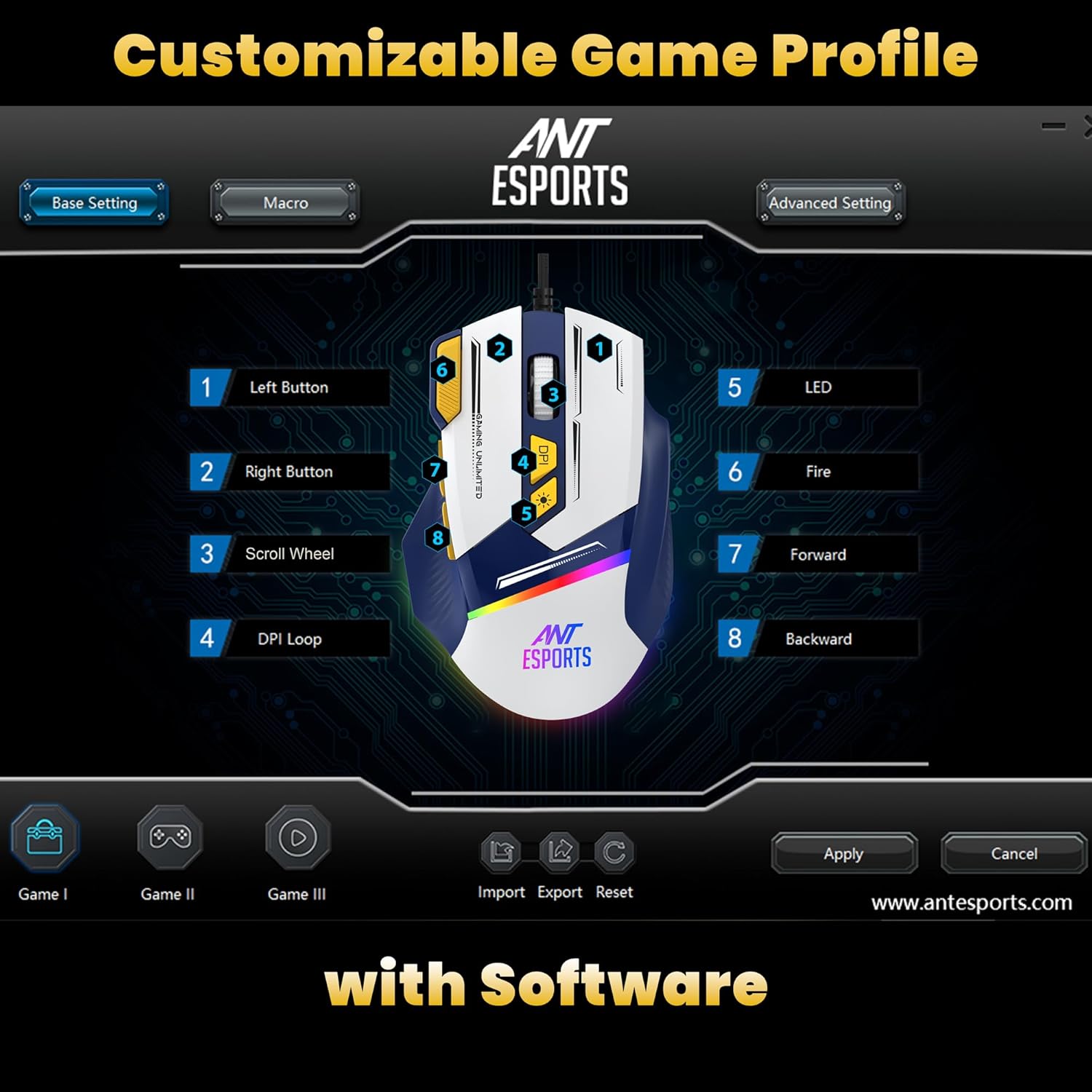 Crafted by Ant Esports, the GM333 offers a powerful combination of high-accuracy tracking, customizable controls, and professional-grade performance. The DPI switch allows fast sensitivity adjustments, while the dedicated lighting button lets you cycle through multiple RGB modes instantly.