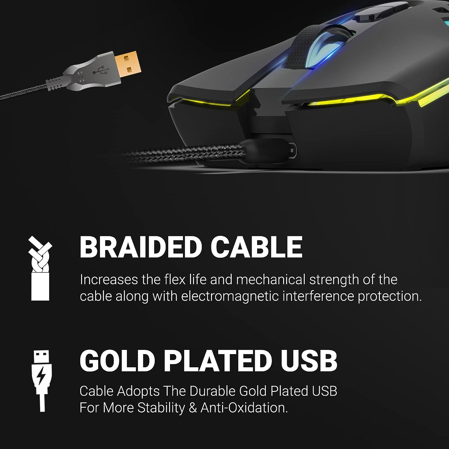 - High Accuracy – With a highly sensitive optical sensor inside the mouse is rated from a range of 1200 to 3600 DPI which ensures wide compatibility with play styles without compromising on accuracy.