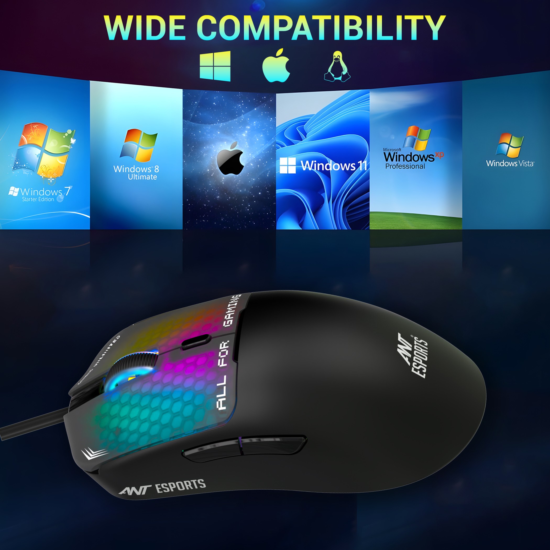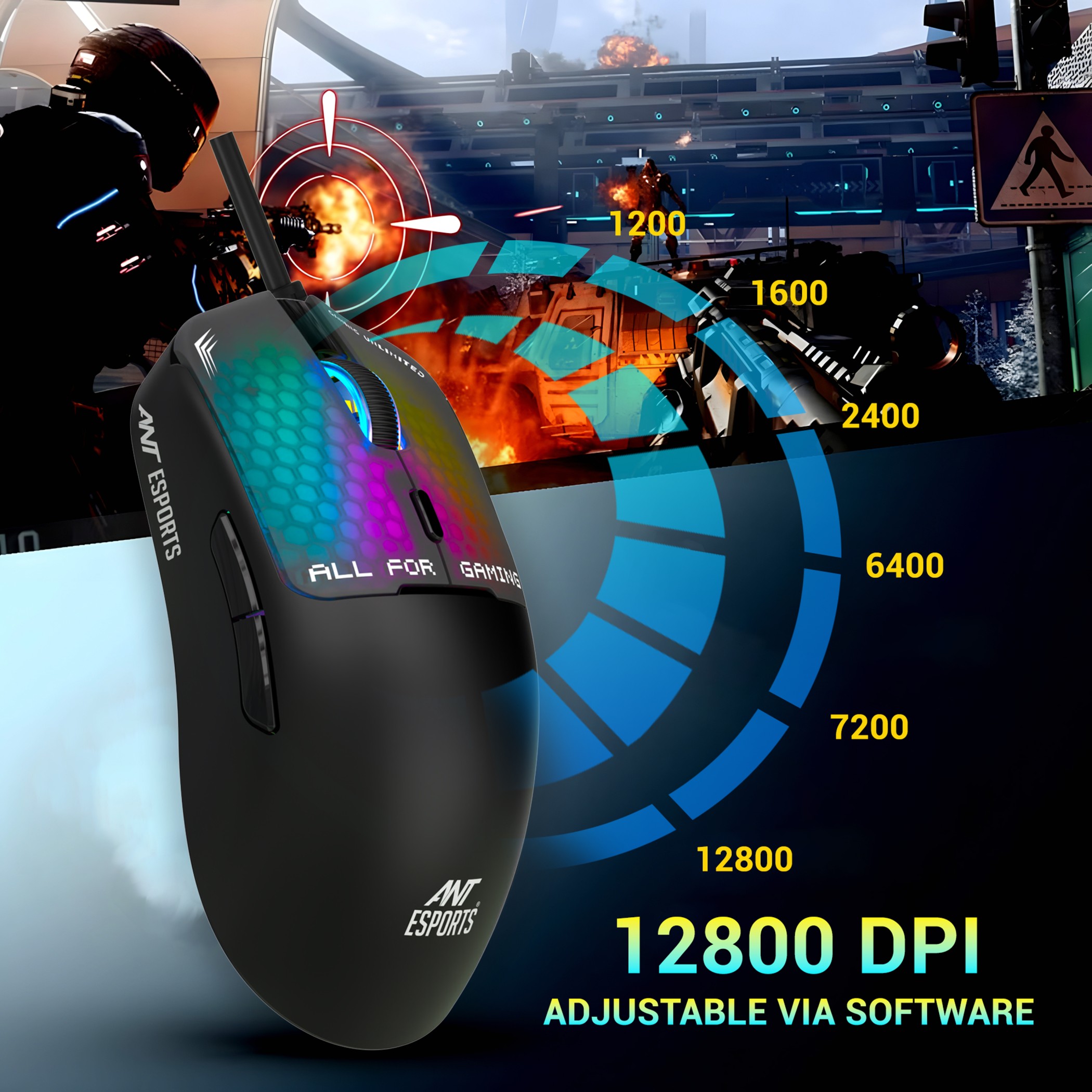 Ant Esports Virtus100 White Wired Gaming Mouse 12800 DPI