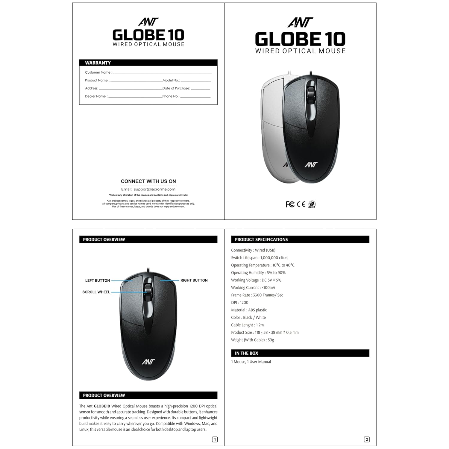 Meet the Globe 10 Wired Optical Mouse, engineered for smooth, reliable, and comfortable everyday computing. With a classic ergonomic shape and durable construction, Globe 10 is built to deliver effortless navigation whether you’re working, browsing, studying, or multitasking.