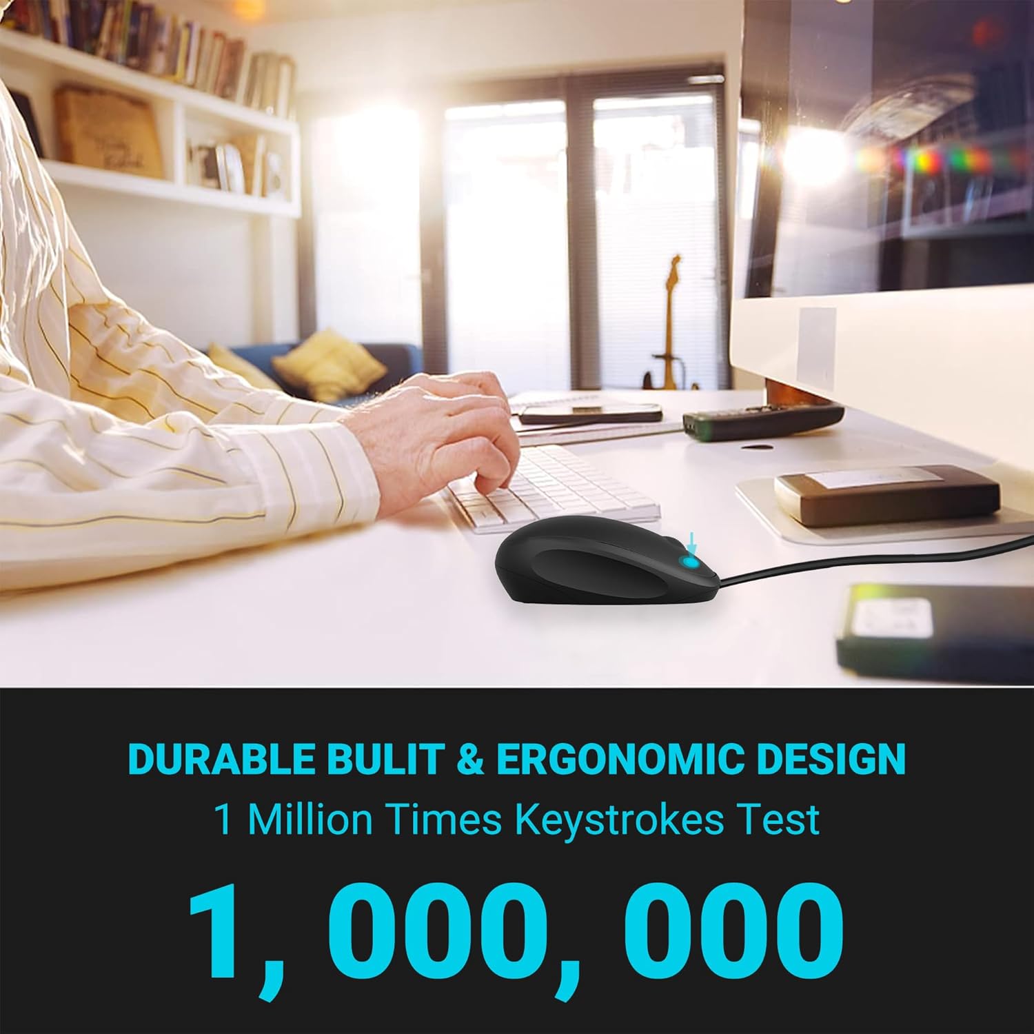 Ant Value OM120 Wired Optical Mouse, 1000 DPI, 3ft Cable, Easy and Accurate Scroll Button, Optical Sensor Computer Mouse, Left and Right-Hand Use for Laptop, PC, Mac Notebook and Linux-Matte Black