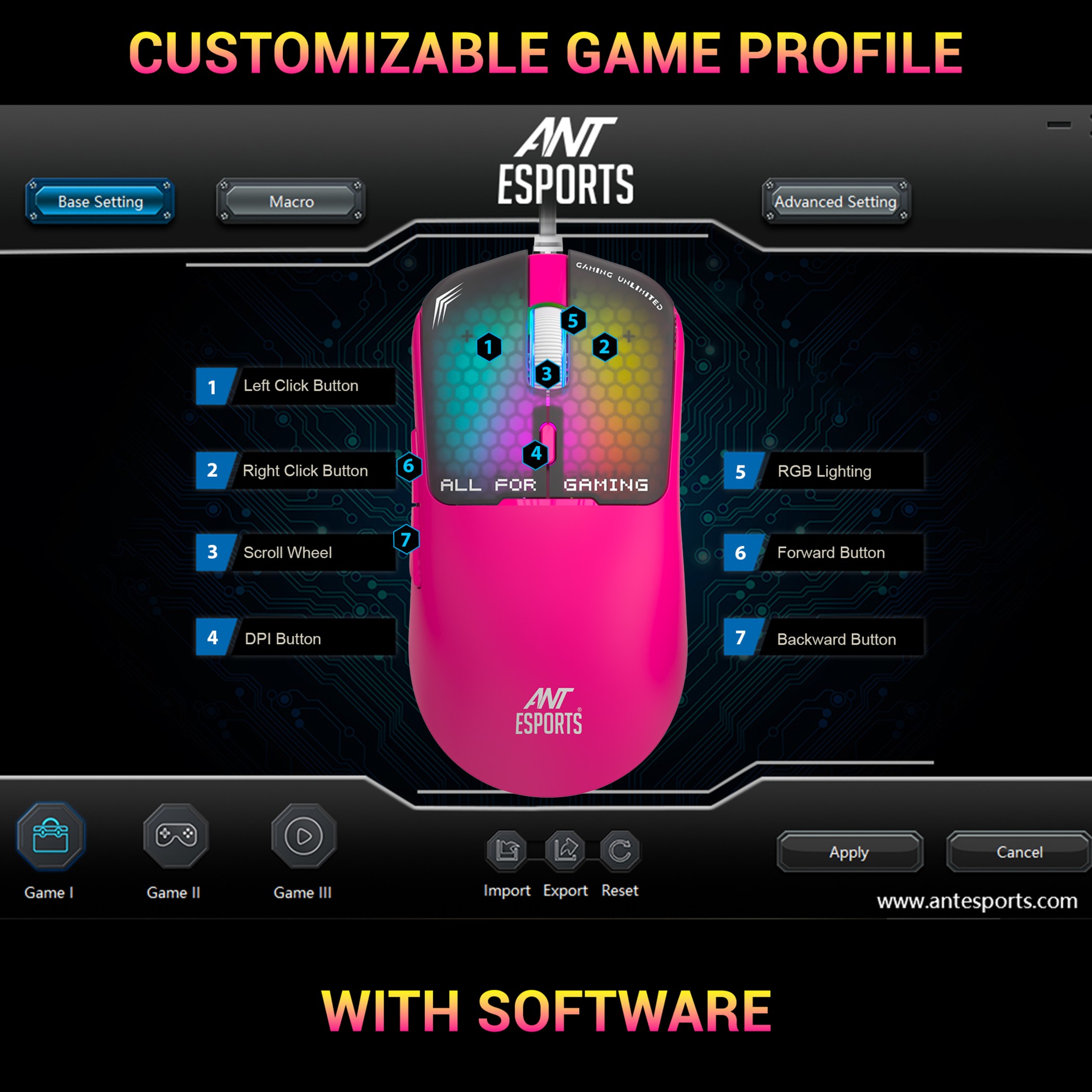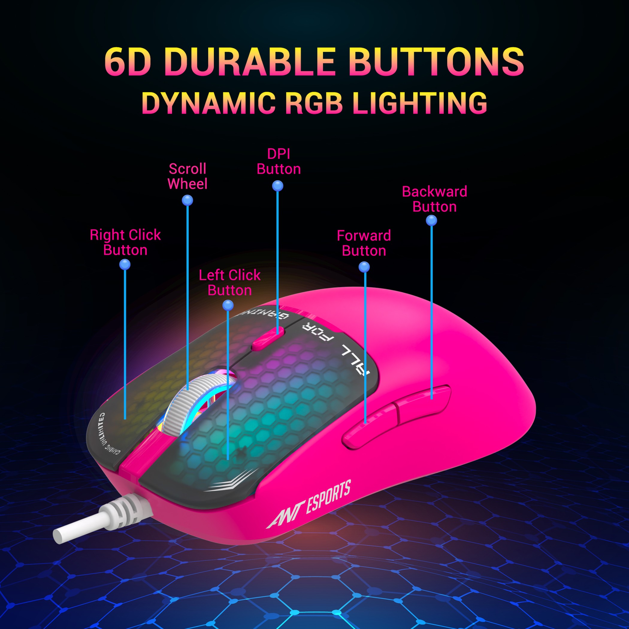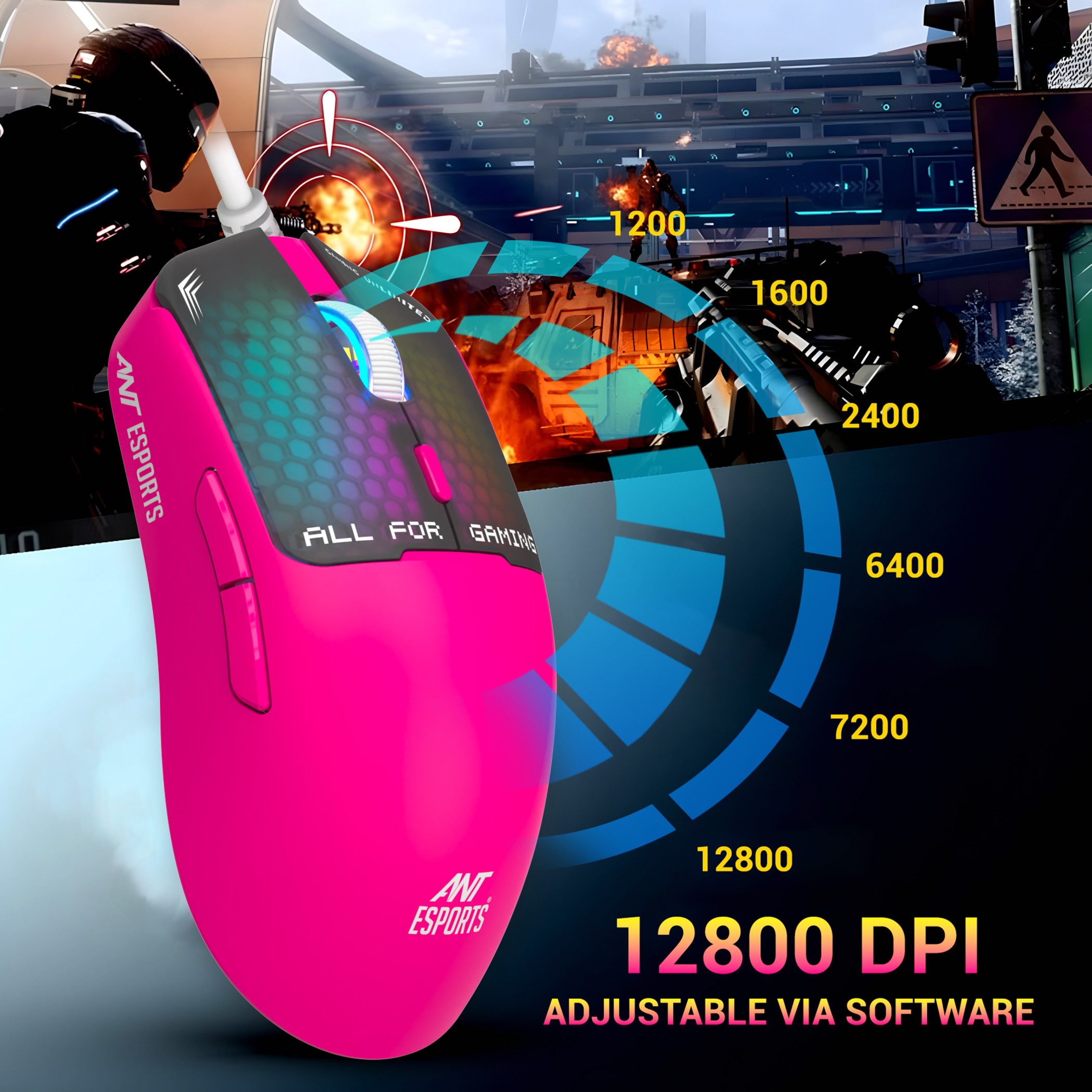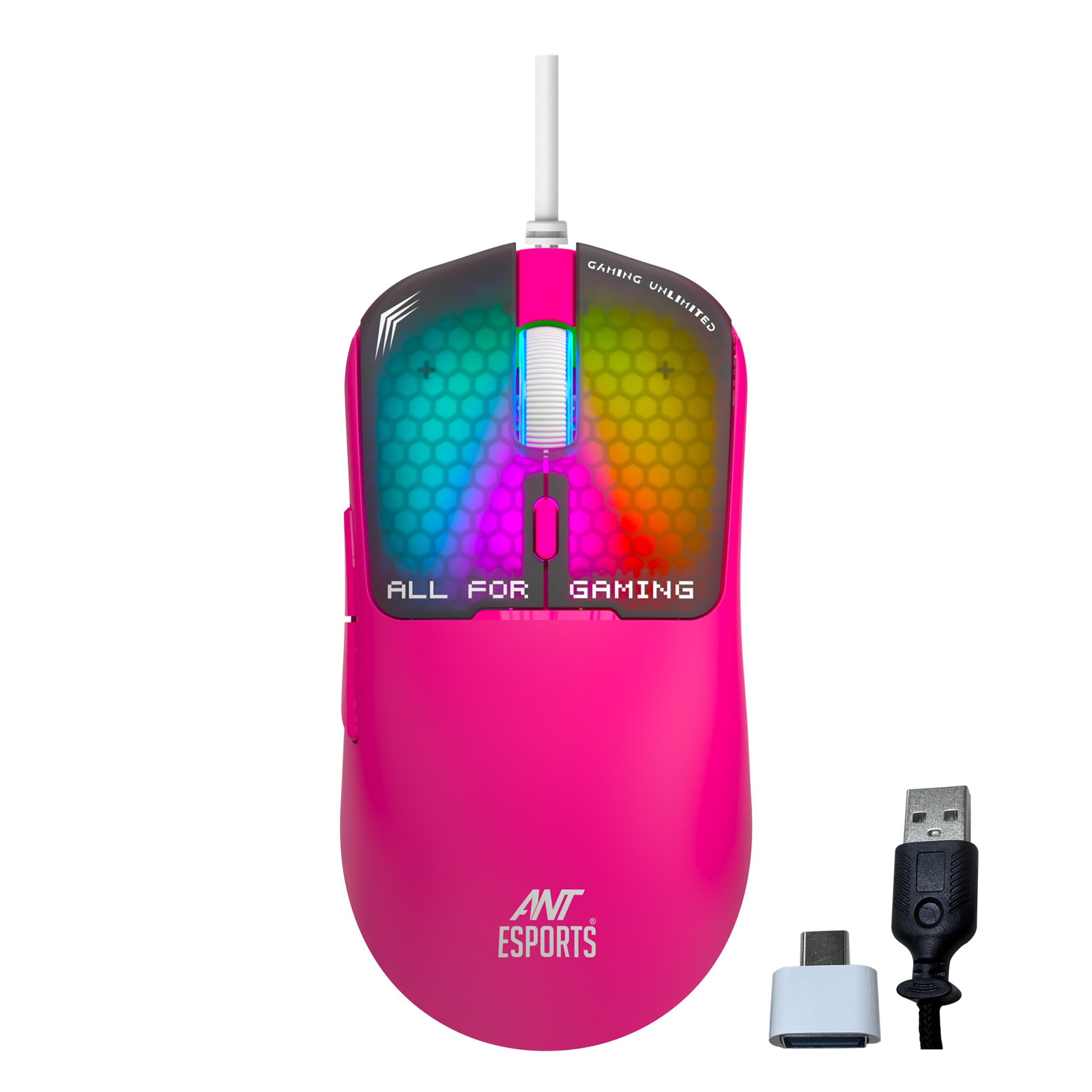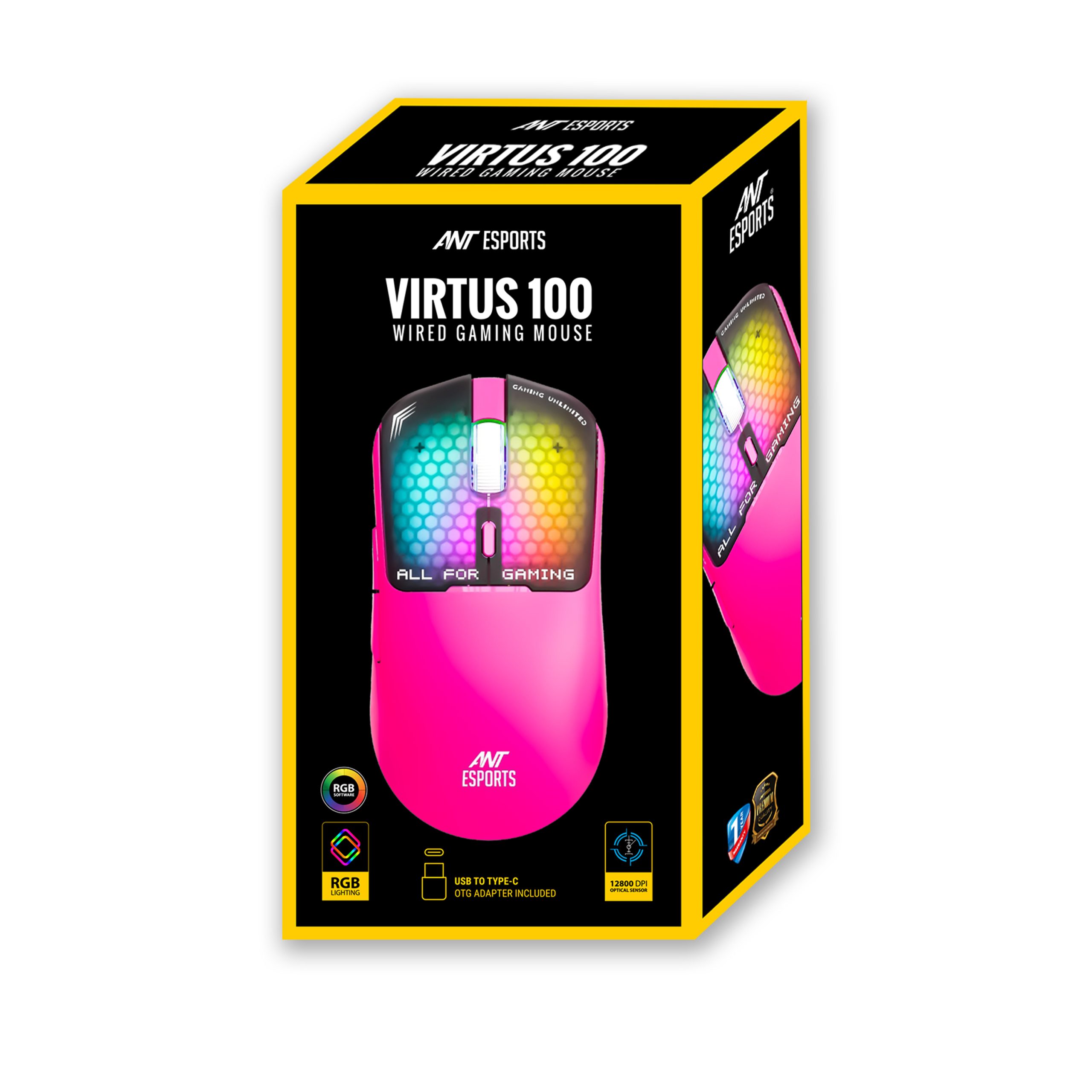 Ant Esports Virtus100 Pink Wired Gaming Mouse 12800DPI