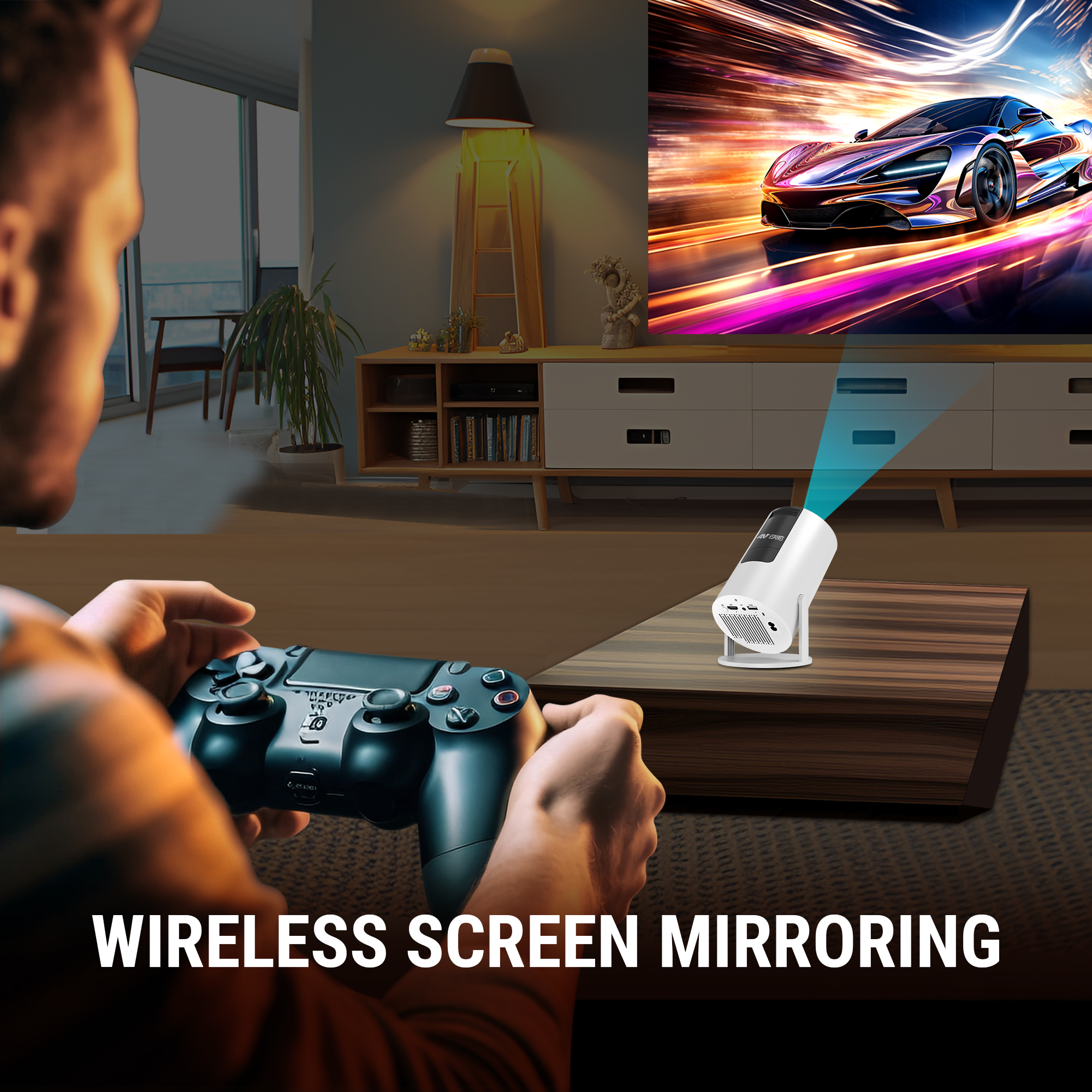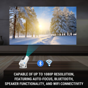 - Outstanding Performance: Support 4K HD Playback, LED display technology. Design with focusing wheel to adjust the definition according to the projection distance (Recommend 1-4m). Available to manual focus and support auto keystone correction function. 1.5 :1 throw ratio provides you more freedom for projector installation and placement, ensuring it fits any room, big or small, seamlessly.