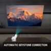 • Outstanding Performance: Support 4K HD Playback, LED display technology. Design with focusing wheel to adjust the definition according to the projection distance (Recommend 1-4m). Available to manual focus and support auto keystone correction function. 1.5 :1 throw ratio provides you more freedom for projector installation and placement, ensuring it fits any room, big or small, seamlessly.