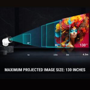 - 130 inches Image Projection: Experience the ultimate home theatre and party experience with your loved ones with our projector that can project images up to 130 inches. Whether you’re watching a movie or hosting a gathering, the big screen experience will leave you and your guests in awe. Enjoy the convenience of having a cinema-like experience in the comfort of your own home or anywhere you go.