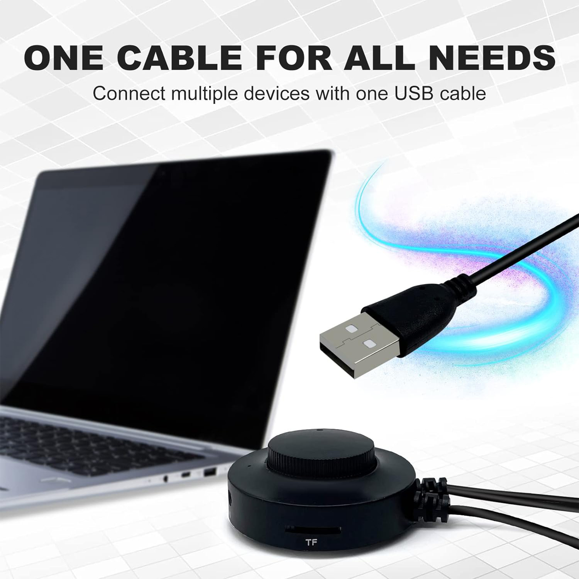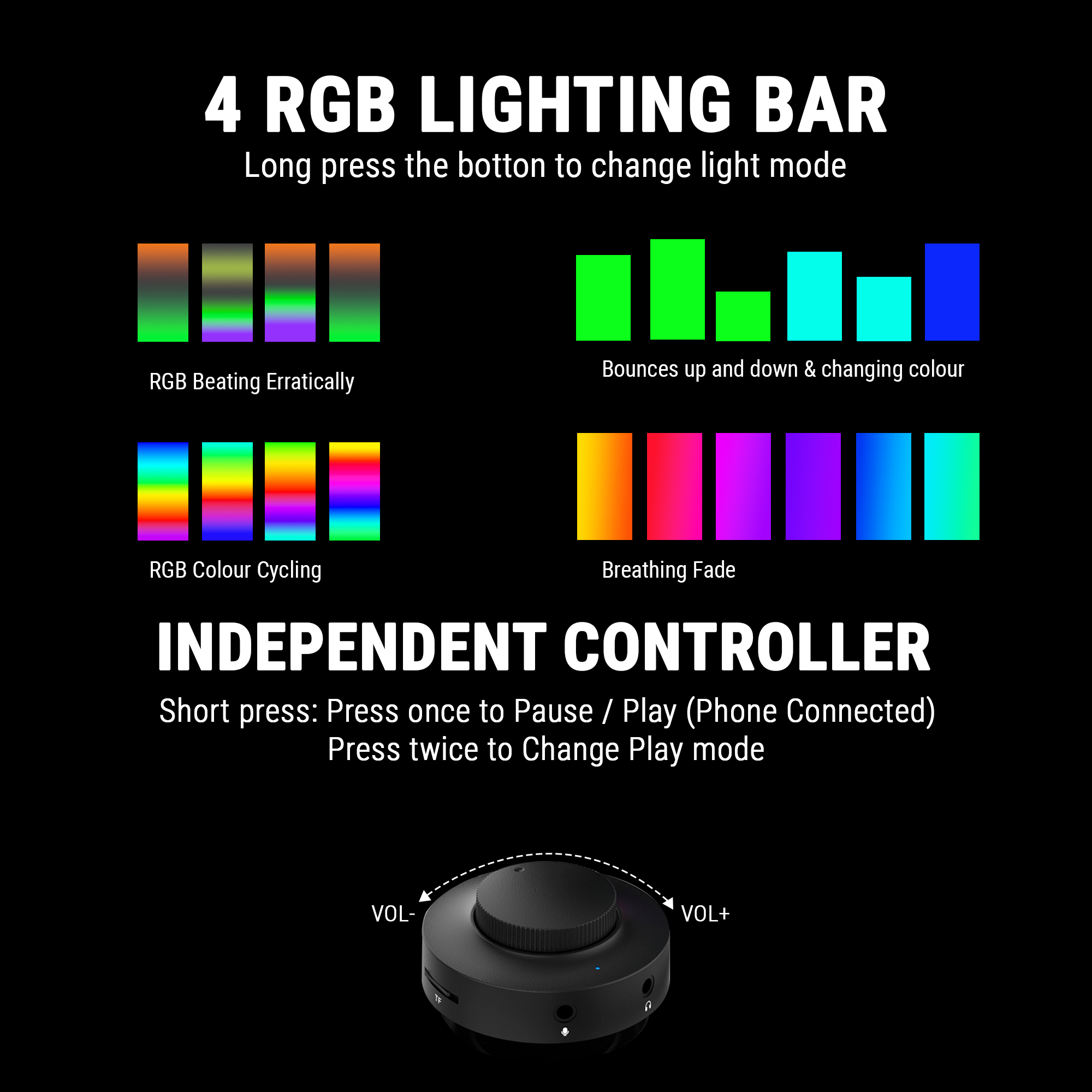 - Centralized Control Hub: The central control hub of the GS510 simplifies your audio experience. Connecting to any device via a USB port, the hub features a volume dial for easy control of speaker volume. Long-pressing the dial allows you to cycle through the four RGB modes, providing a seamless integration of audio and lighting customization.