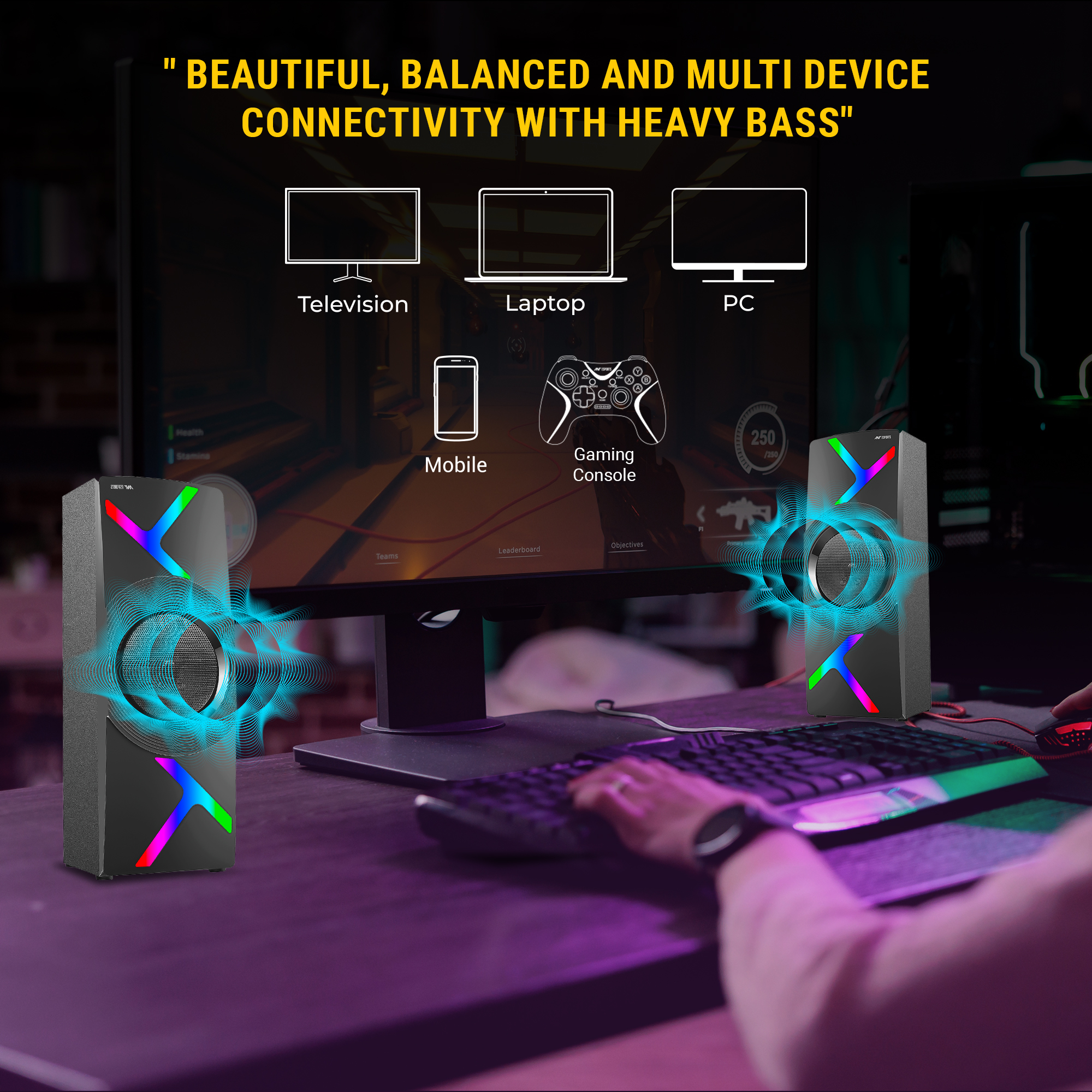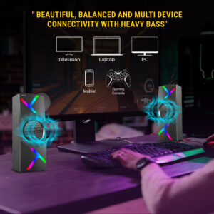 - Captivating RGB Lights: Elevate your gaming setup with the mesmerizing multi-color RGB lights integrated into the GS80 speakers. Enjoy a visual spectacle that syncs with your gaming ambiance, creating an immersive environment that complements your style.