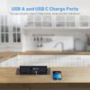 • Versatile Connectivity Options: The AEMDS412 is equipped with a comprehensive array of connectivity options, making it versatile for various applications. It includes two three-pin AC outlets for powering electrical devices, two RJ45 ports for internet and Ethernet connectivity, one USB port, one HDMI port, one VGA port, and one 3.5mm audio jack. This diversity of ports caters to the needs of home users, conference rooms, gaming PC setups, and offices.