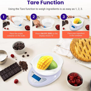 - Convenient Large Bowl: The scale comes with an extra-large bowl, providing ample space for ingredients and ensuring a mess-free cooking experience. The bowl, equipped with the precision gauge sensor, guarantees accurate measurements for all your culinary endeavors.